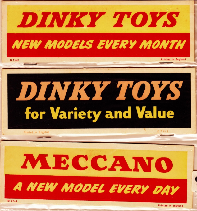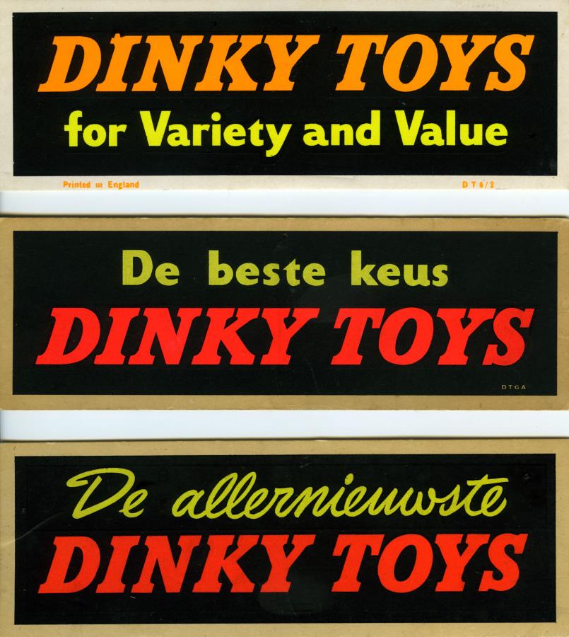 Hi Terry The English one was given to me by my very good friend the late Graham deChastelain about three years ago. The other two I bought from e-bay last week. I am always on the lookout for Dinky ephemera. and in particular the old shop display material. I believe these date from the late 1950s or 1960s. Dave