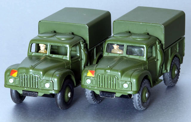 Here are my two 641 Humber 1-ton Trucks, the older one on the left has the Royal Armoured Corps sign applied correctly with the red triangle at the top left. The newer truck with windows on the right hand side has the RAC sign applied incorrectly with the red at the top right.