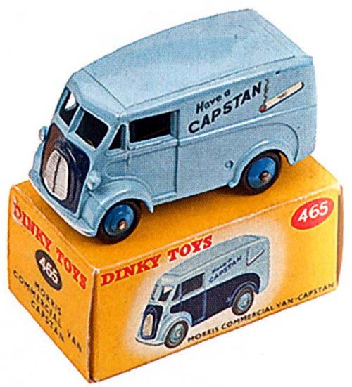 Hello, Apparently this no. 465 Morris Van Capstan was produced shortly before or shortly after the weekend. Althought the front got its second, dark blue colour (and the right-hand side too, as mentioned in the description), the left side was forgotten.