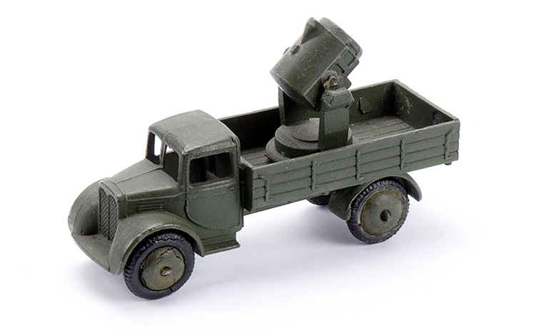 The other way round is possible too, showing a post-1946 no. 161b AA Gun on Trailer on the left with treaded tyres and a 1939 example with (incidentally flat) smooth tyres.