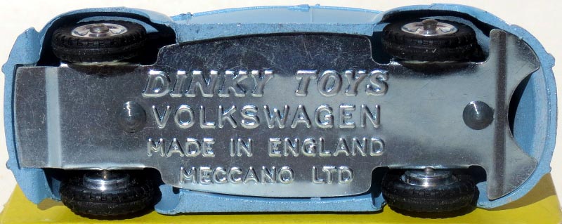 dinkycollect wrote: 'Terry, I certainly include all the different base plates for each model when I know about them and can obtain a picture good and large enough. In the Encyclopaedia, . . . . . . . . . . . . . . . . . What about this one with a yellow baseplate which is probably dichromated ? It is the first such base plate that I have seen, in fact I have only seen this picture and the model is under investigation 300 miles from here. More about it later.' Jacques I have not seen an 822 with that type of base plate - all those that have come and gone through my hands have been the normal gloss plates, although one does appear to have a satin finish although that could have been as a result of how I photographed it at the time as well as the lighting conditions. I am aware that this thread is all about MATT base plates, but thought I would throw in an image of the 181 Volkswagen with a plain/silver base plate and no sales number. (Would I be correct in saying that the 181 was the only Dinky to have an unpainted base plate?) The 181 Volkswagen has both gloss and matt base plates, as well as the unpainted base that came with the light blue with spun hubs version only, although there may have been other colours with an unpainted base plate, as nothing with Dinky Toys is definitive! I have not seen a matt base plate on a 181 either for that matter but that does not mean there are none 'out there'! Bruce