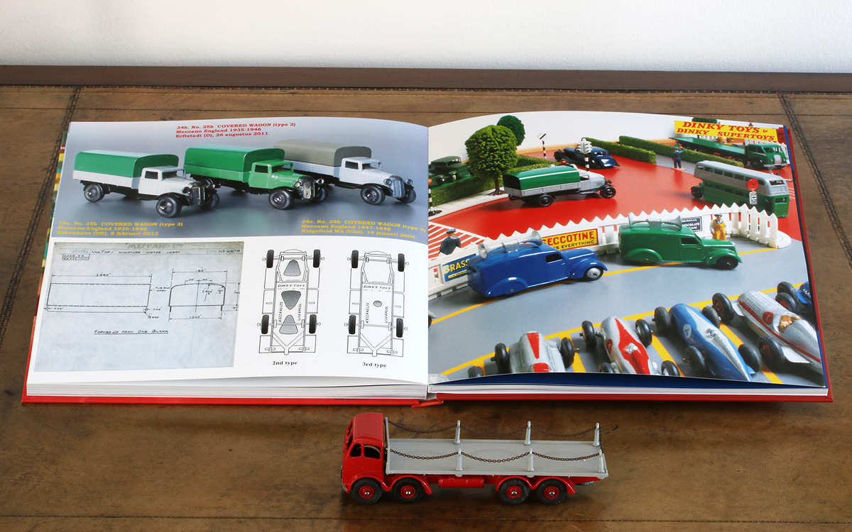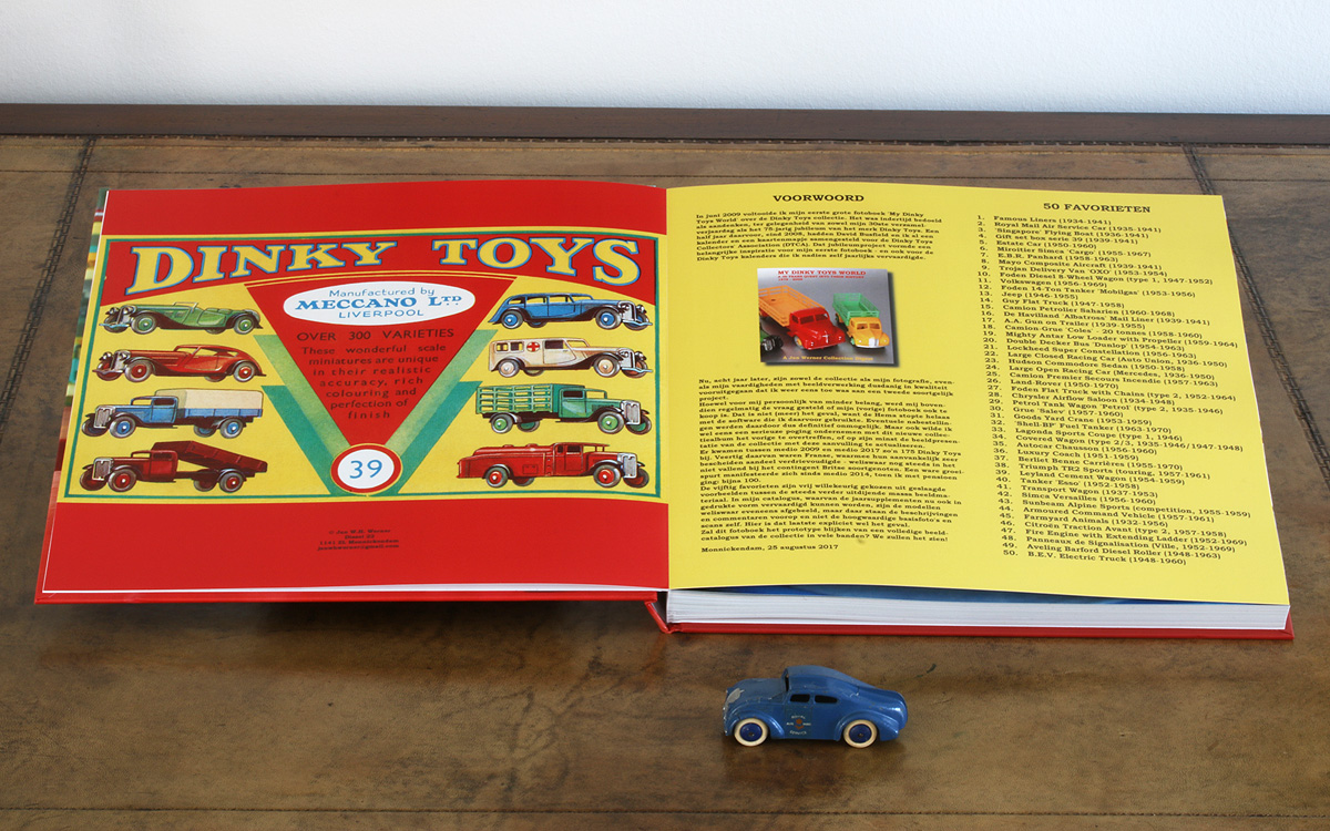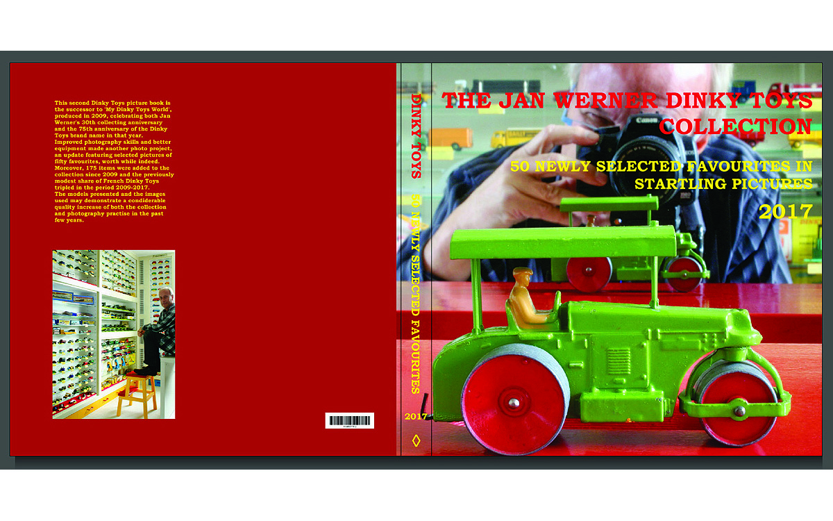 Just finished another private photoalbum, the first since 2009. With 50 randomly chosen Dinky items featuring, each topic on one spread, I hope this new effort will turn out to become a prototype for a definite overall image catalogue of the whole collection, which no doubt will take many more volumes. This one with 104 pages, each 30 x 30 cm, the spreads of course 30 x 60 cm. The file has been uploaded now, but I have not seen the printed result yet, which will take about one week. Reduced provisional pictures of some spreads included here (the colours a bit too 'heavy' as reproduced on this place). Kind regards, Jan