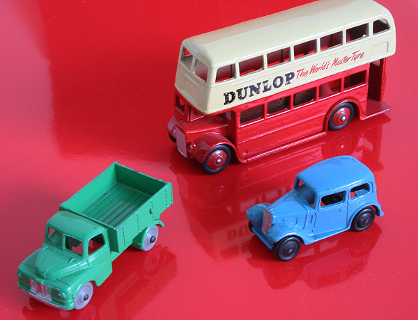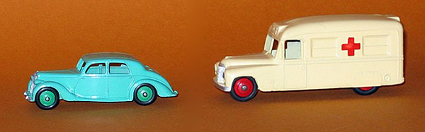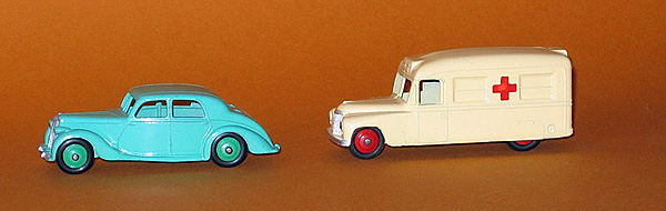 Dinky Toys of similar sizes, the Riley Saloon and the Daimler Ambulance. The scales are different though: 1:48 and 1:60.