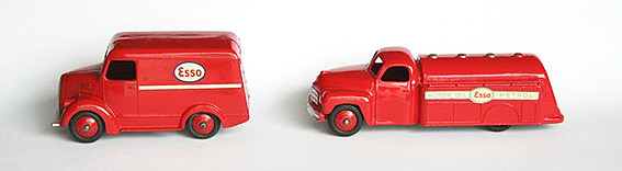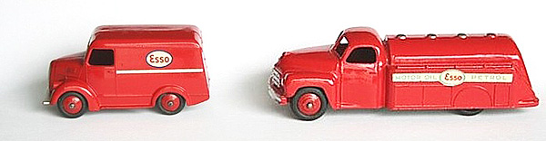 A nice couple of comparative volume and size, the Trojan Van 'Esso' and the Studebaker Tanker 'Esso'. The first one on the 1:48 scale, the second 1:60.