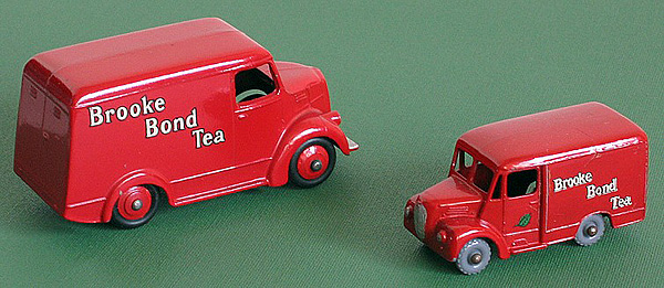 Trojan Brooke Bond Tea Vans of Dinky Toys and Matchbox. Not exactly the same Marks but very similar and on deviating scales of 1:48 and 1:75 respectively.