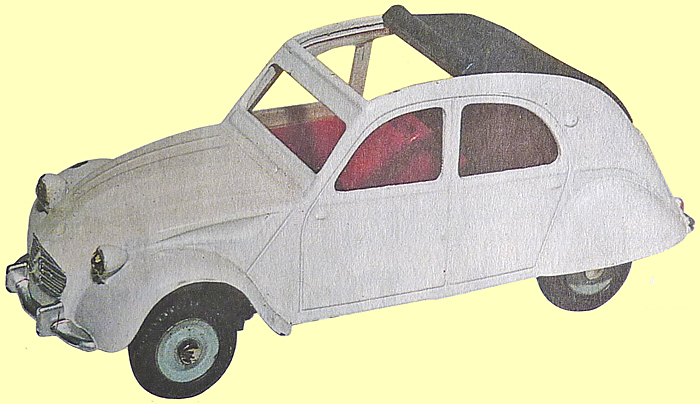 When it was decided to make a new model, the very first thing done was a mock-up often wrongly called a prototype. There are different types of mock ups : the wooden ones and those,made from modified existing models like this 2cv ref 538 with non opening bonnet which was the mock-up for the # 500 with opening bonnet, jewelled headlights and open tilt. These models could be finished in any colour which was available at the time. These models were often sent to the artist who made the drawing for the boxes and the catalogues. This explain why very often the drawings are in a different colour from any of the models sold.The second stage was to make the master model carved in wood but this is outside the scope of this post.[img]/images/sites/default/files/u184/1425-MatraJaune.jpg[/imgWhen the tools had been made, a dozen or so models were cast, painted and assembled; again the colour was what was available on the painting line at the time. The aim of these pre-production models also called pilot lot was to verify that all the parts fit and that the moving parts worked properly. A good example is this yellow Matra 630 which of course could only be issued in French Blue only.[img]/images/sites/default/files/u184/1403-MatraOpen.jpg[/imgWhen the first Matra M530 was assembled at Bobigny it was found that there was an interference between the bonnet and the headlights. The Dinky R & D manager called Matra to discus if there was a mistake somewhere. The answer from Matra was that they had not yet opened the bonnet when the headlights were raised; the actual car was modified but it was too late for the Dinky.The colour samples are different from the mock-ups or the pre-prod models. Only one or two were made with any colour. The British colour samples had identifying labels as discussed widely above but the french ones did not have labels. It is then extremely difficult to say if a model with a veryrare finish is a colour sample or a pre-prod models.