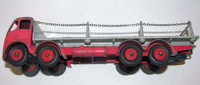 Hi, Just picked up this 905 Foden flat truck with chains at a local toy fair. It has (mainly) plastic hubs except for the front ones - quite frustrating! In my 10th edition catalogue, the Foden is shown with plastic hubs as well a glazing and a steering wheel. Just shows you can't trust catalogue pictures. The 934 Octopus on the same page appears to have glazing as does the 943 tanker.