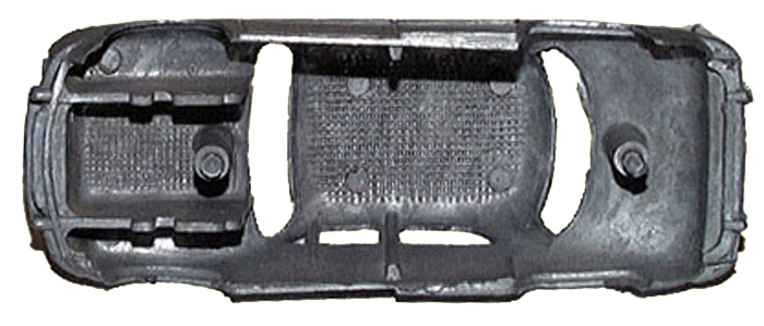 Dear Terry and David In a post above, I probably did not explain enough when I wrote that cross-hatching was to reduce the quantity of metal. This is because the alternative to cross-hatching was to make that area thicker.Three is no information about how many moulds were made for each model but ther was usually one only. There is evidence that parts of a mould had been replaced (24u Simca Aronde) and that two moulds were made one after the other (521 Bedford artic) a third case is that two complete moulds were made at the same time ( Bedfords TK or 33 Simca Cargo) because the planed production figures were high. Such moulds vere never identical and several variations can be found between them. Raised lines like those on the roof of the 28e Isobloc coach, the roof of the 811 caravan or the tipper of the 585 Berliet GAK end tipper are other means of mastering the metal flow in the moulds. Cross-hatching is not done only on the ceiling of cars but also under the bonnet or boot.