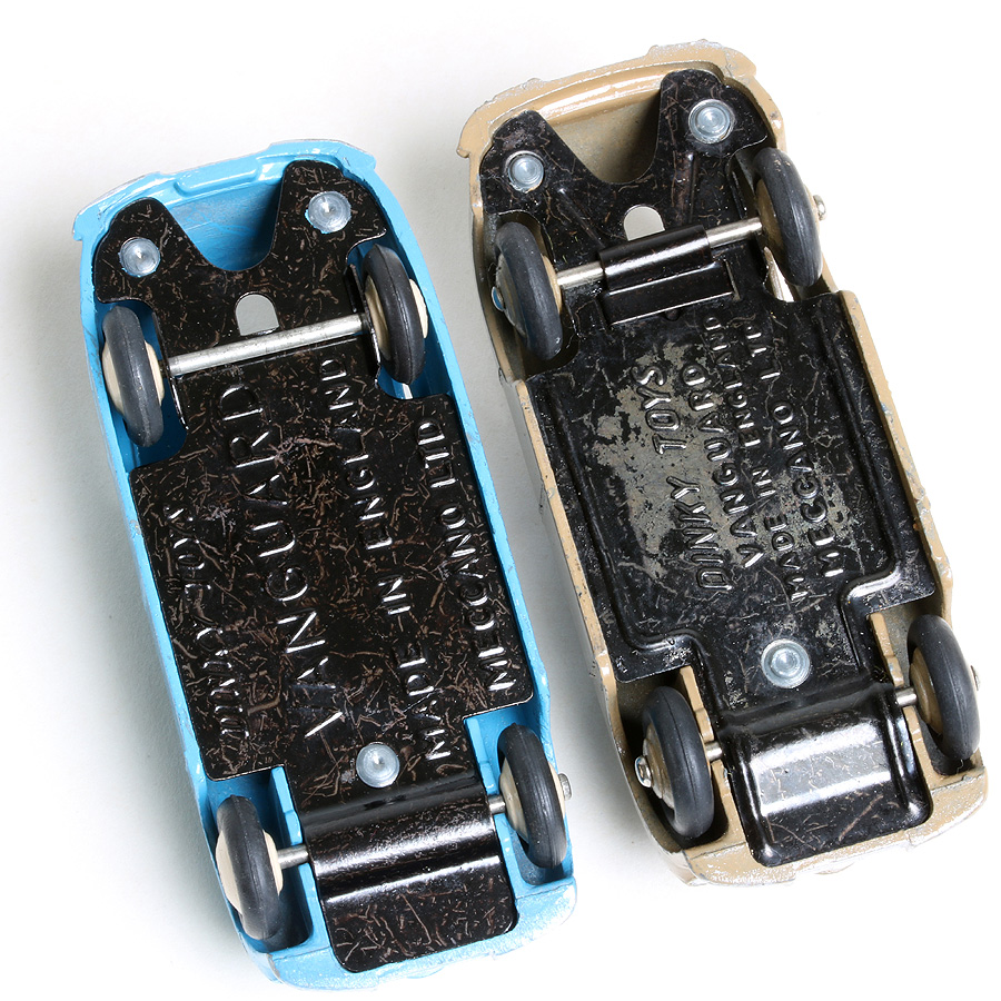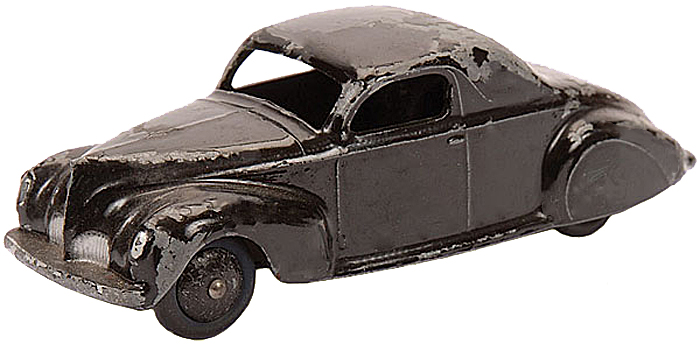 A pre-war Lincoln Zephyr ref. 39c with smooth hubs and domed axle ends. Are the axles thin or thick ? The first Dinky with both domed axles ends is the Lincoln Zephyr ref. 39c issued in June 1939. The front axle was not finished on the car which allowed the use of pliers, the ends of the rear axle were not finished at all as the axle was maintained by the car's body. This is the only occurence of domed axle on the 39 series. As all the axles of the 38 series were pre-assembled, it was easy to dome both ends of the axles as shown on the photo of Bobigny above. The next model issued was the van ref 280 which had crimped axles. Next comes the US Army jeep in April 1946, it has still the crimped axles and the Riley ref. 40a has the same construction as the 38 series.