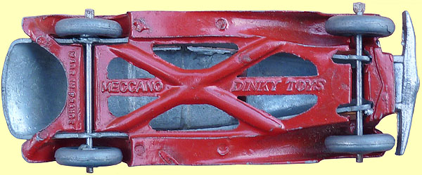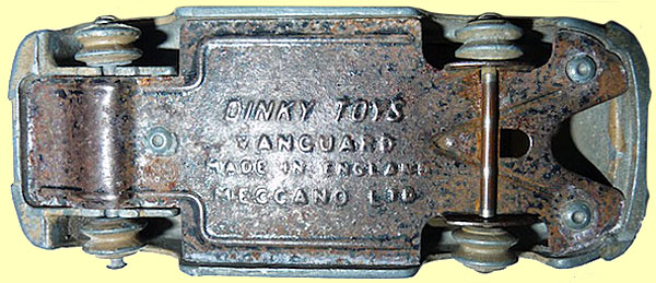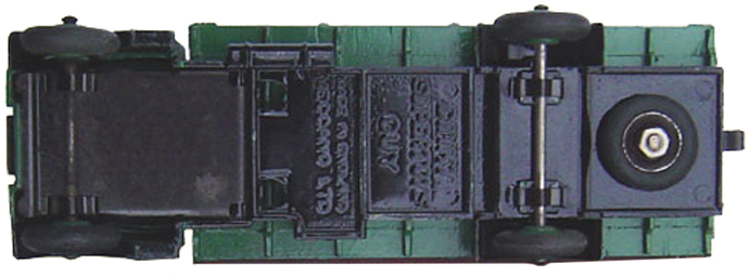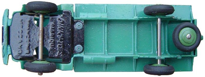 Underside of an early Triumph 1800 with diecast posts for the rear axleThank you to the nice guys at QDT who provide photos of the undersidefor most of the models they sale. In july 1948 the B.E.V. electric truck and the early Triumph with diecast posts for the rear axle have pre-assembled axles.