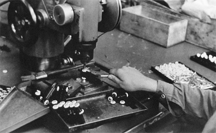 but on the 24 series it was not possible to hold the axles although this could hardly be done for the 25 series trucks. The first end of domed axles was probably made on an automatic lathe which cut a lenght of wire and spun one end. These partly made axles were given a different job number for each length. Some models were fitted with different length axles for the front and rear. The fact that both ends of an axle were made by two very different machine explains why these ends are different.
