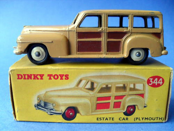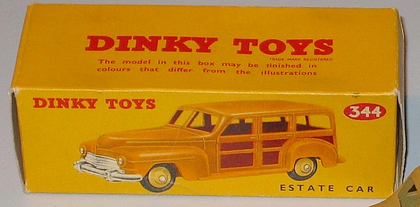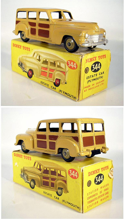 Looking in my own catalogue and reviewing the article by Nigel Mynheer in Model Collector 156 of October 2001 there remains some confusion about the colour history of this model. In fact Nigel Mynheer, in his article 'Dinky's American dream', discusses the models in the Jean-Vital Remy-Meeus collection, also the Estate Car, and there is no other variant in his collection offered for auction than the ones I mentioned. Besides, Nigel Mynheer, who is very expert, states that he has never seen one with red panels. On the other hand I have a note in my own Dinky catalogue that a long-time collector friend of mine once owned no less than 12 Estate Cars with variations in wheels, base plates, shades of tan and even a cream one with red panels which (mind you:) he sold to Jean-Vital for 1000 guilders, a huge amount some 20 years ago. But apparently this model was not present in the Remi auction in September 2001. My friend is very precise in the authenticity of Dinky models, and so is his memory. This is all I can add at this moment, but some pictures: