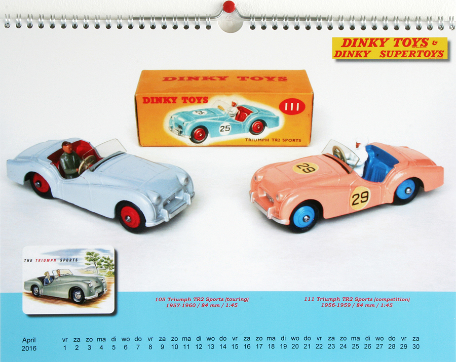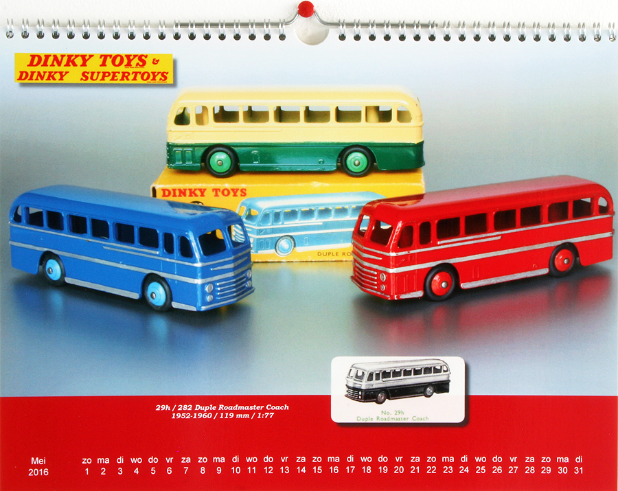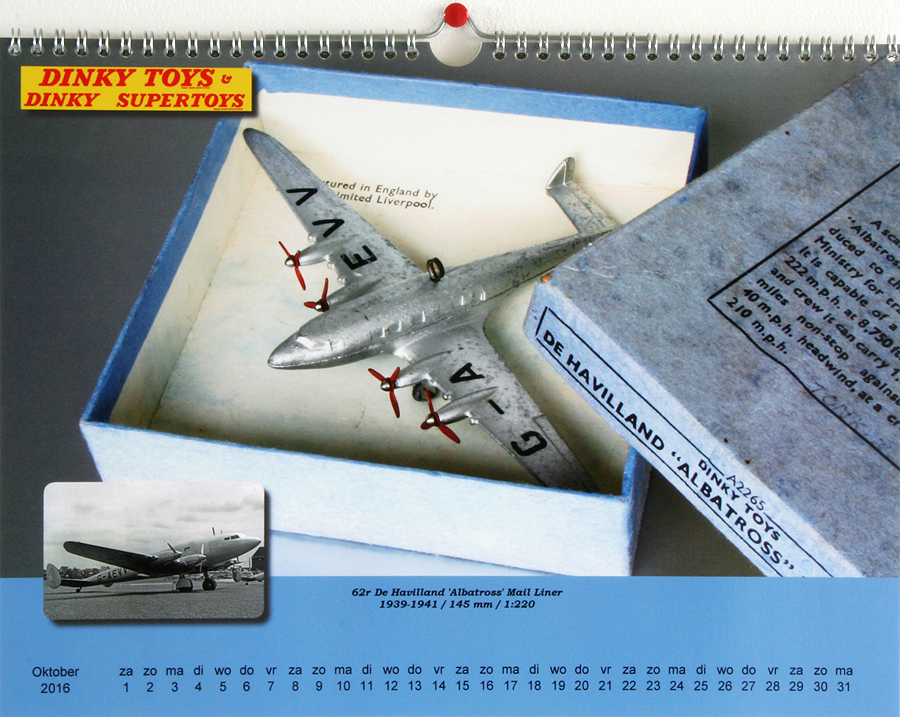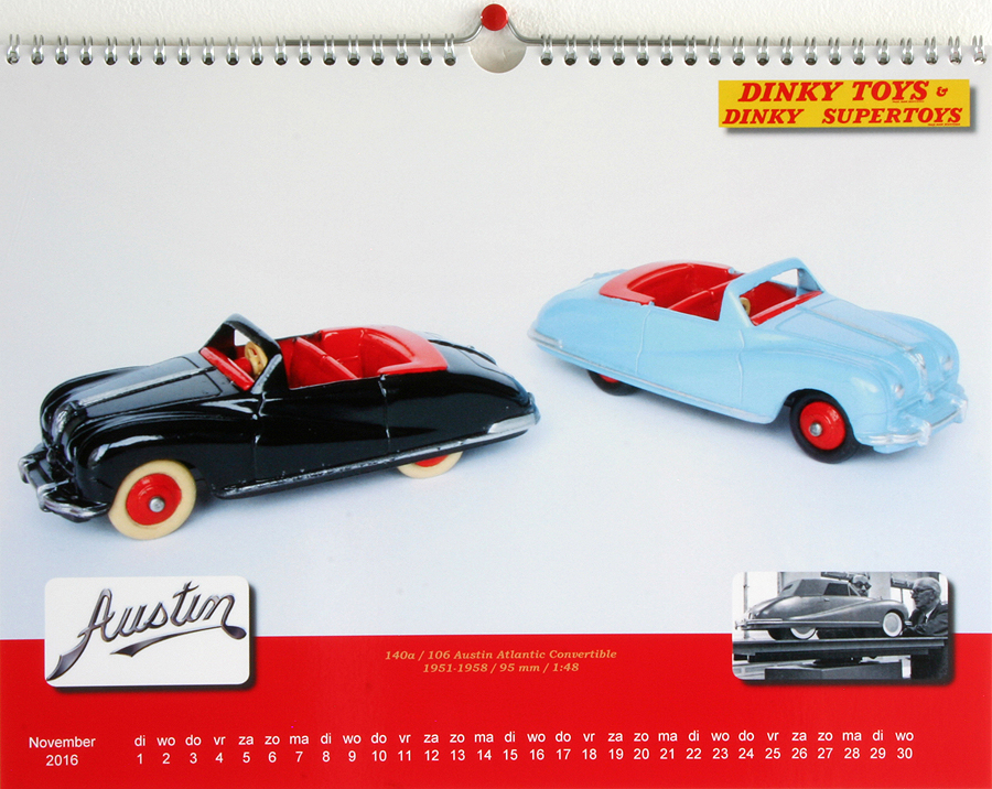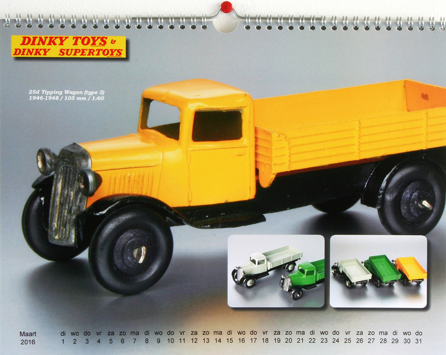 As soon as the last quarter of the year has come I start selecting nice pictures and photographs for my private Dinky Toys calendar for the next year. So I started gathering images from my files last week and - using the omnipresent software for making albums, cards, calendars etc. - I composed my new private calendar for the year to come, 2016. I got a surprisingly quick message that the copies I ordered were waiting for me and they arrived this afternoon. It is always exciting to see how the results from the computer screen have materialized on paper, and I must say that I am not disappointed. I made some quick photos and thought you might like them to be shared with you. In fact they are photos from photos, so this extra step introduces some noise in the quality of the pictures. All about 'the making of' my annual private calendar in an article published by Model Collector, the January issue of this year, 2015, pp 48-53. Enjoy and kind regards, Jan