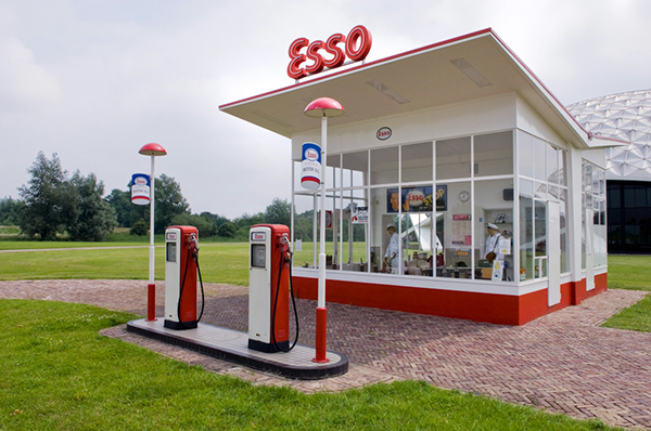 Esso service station of the 50s of architect W.M. Dudok preserved by Louwman & Parqui Toyota museum in Raamsdonkveer. It also has been copied as a miniature 1:87 by 1005 Busch Tankstation Dudok Esso NL. 9 May 2019 Jan Oldenhuis