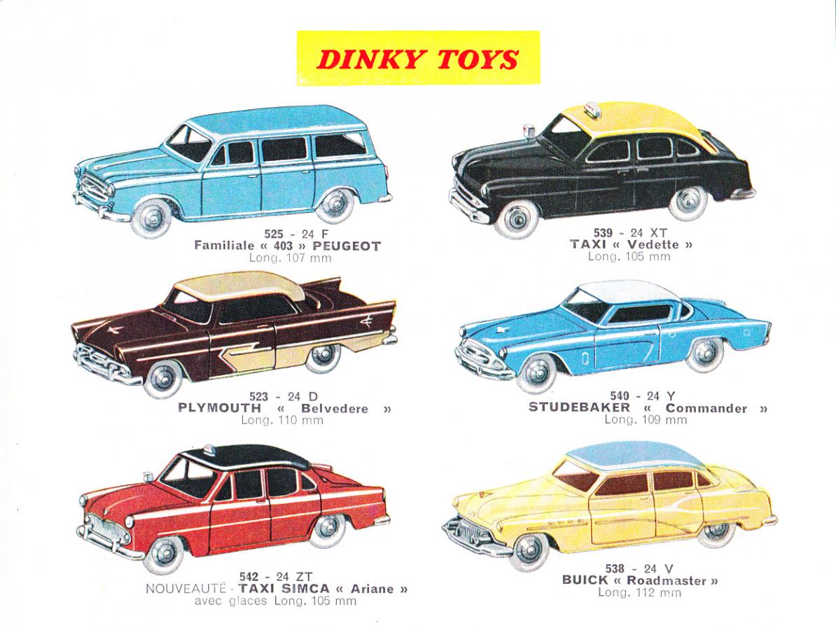 As most of you know, I retired from active collecting a couple of years ago.....but I recently made a brief, one-time return, to make a final, long sought acquisition.......the 24v Buick Roadmaster in the rare and hard to find ivory and metallic blue version. I have little actual information on this color combination, but from all appearances, it was the last color variation issued, and apparently only for a short time around 1959. The Buick Roadmaster made its final French catalog appearance in 1959, and is the only catalog showing this particular color. So I now have all five color variations of this most wonderful model....to me and many others, it represents the pinnacle of Dinky diecasting and paint detailing up through 1959. Best regards, Terry