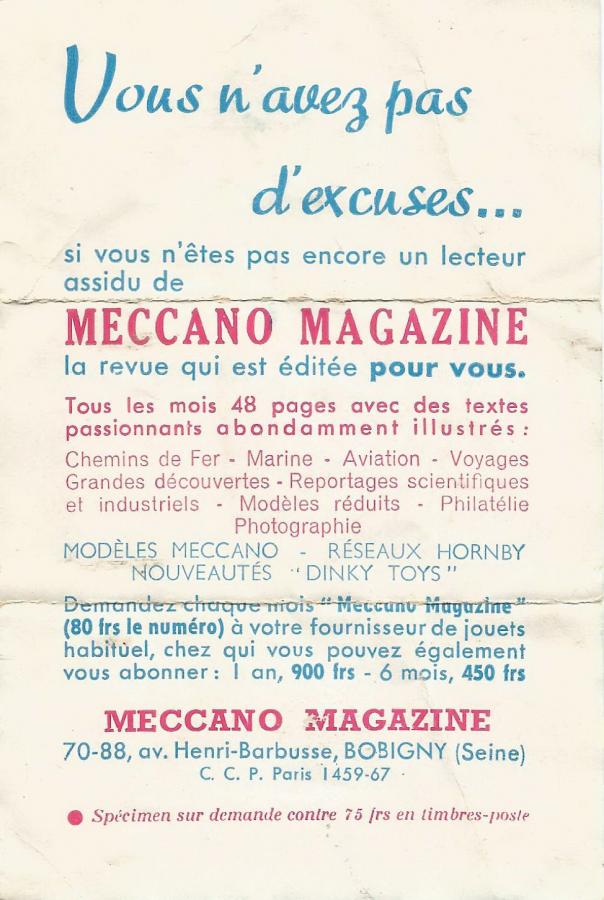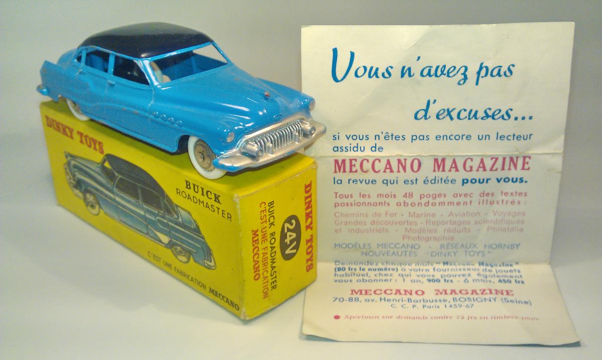 Terry congratulations on this special purchase. Very nice that you still complete your collection. I think the Buick Roadmaster is one of the nicest cars that Dinky Toys France has made. When I bought this Buick Roadmaster a few years ago, I received a concertina leaflet with advertisement for the French Meccano Magazine dated Avril 1954 with the model in the box. I had never seen this before. These seem to be included in the box with the model at the time. Best regards Jan O.