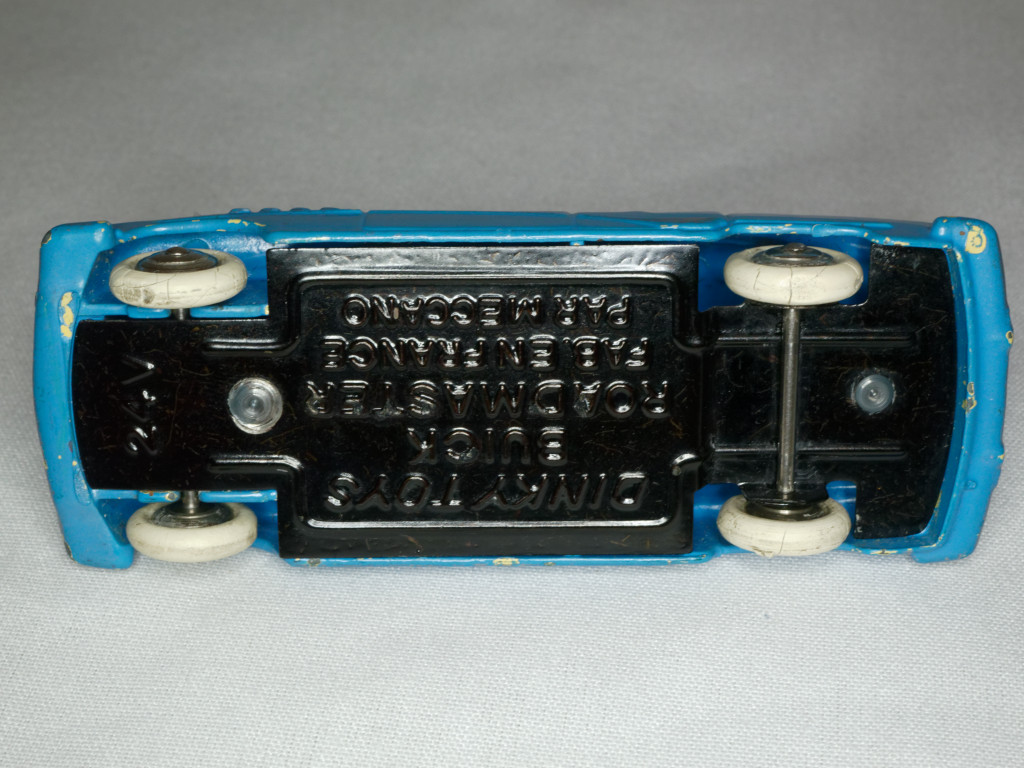 Jonathan-First of all, congratulations on getting a Dinky Toys Buick Roadmaster. As I have mentioned before, I personally feel this is one of the finest examples of a diecast model through the 1950s. The execution of the design, and the attention to detail.... both diecast and paint, is second to none..... Now, on to this example: at first glance, it appears to be a very nice example of the light blue body, with dark blue roof. But, as you mentioned, the appearance of the yellow finish under the chipped areas is most curious, and no, I do not happen to remember seeing an example of another model with this characteristic. A couple of things do stand out to me: 1. There is a lot of light chipping in many places, while the overall model is in quite nice condition. It kind of suggests that the blue paint is a bit fragile, and also a thick coat, and prone to chipping. 2. The view looking down at the top of the hood or bonnet....there is a cast detail line running from the front toward the windshield, at an angle. In your picture, this line does not appear real crisp or distinct, but rather like it was heavily painted over, leaving a soft rather than sharp line. I compared this detail feature with all 4 of my examples.....and all of mine have a sharp, distinct line, with no sign of a heavy or second coat of paint. From the photos you supplied, this is the single most troubling find; I dont know how to explain it away! I also would like to see some good closeup photos of the sides and also the rear. The other, obvious thought is, just why would anyone at the factory re-paint a model to a new color? Did they have lots of yellow ones, that were not popular, and did not sell, so they decided to re-paint a whole batch of them? If so, that would account for the otherwise excellent finish, and also the thicker paint. Maybe someone else can offer an opinion or enhance our Dinky knowledge..... Best regards, Terry