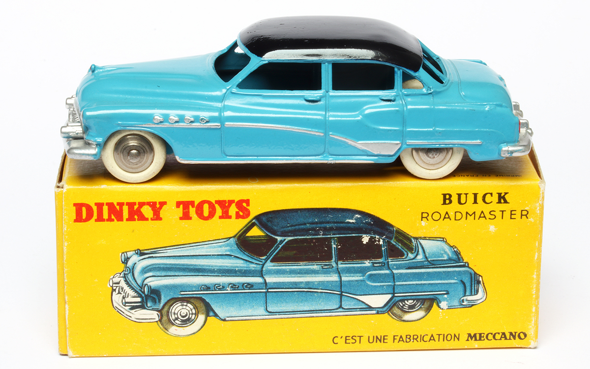 I have 2 Buick Roadmasters. 1st version blue/dark blue with smooth inner roof, but without silver detailing on the sides and 2nd version yellow/green with checkered inner roof with silver detailing on the sides.I find the lack of this silver detailing on the side and blue paint on the side of the bumpers suspicious and that's why I consider my 1st version as a repaint. The silver detailing is clearly shown on the accompanying boxes and apparently it should have been applied that way on the model.I am also fascinated by the beauty and detail of this French Dinky Toys model. After receiving my 2nd version, I started to delve more into certain details of the model and I also went in search of the origin of the model, among other things.Terry describes in #4 that the original model is probably from 1952 or 1953, but I think that is a mistake and must be 1951.The Meccano drawing No 100383 of this model is included in the DT encyclopedia of Jacques Dujardin and is dated 1-7-52. The model is indicated on the drawing as Buick 72 R which I find special in itself, because I had never seen a model number of a car on another Meccano drawing. It also makes it easier to find an image of the prototypeWhen looking for brochures I have downloaded Buick brochures from the years 1951 to 1953 and come to the conclusion that only the brochure from 1951 fully corresponds to the Dinky Toys model which I show below. I only found the chrome trim on the side, the so called sweepspear to and on the rear fender in the 1951 brochure. A similar chrome trim version also has the 1953 brochure, but that cannot be the original Dinky Toys model, as it has different headlights and front grille as can be seen in the photos below.Jan Oldenhuis 11 June 2021