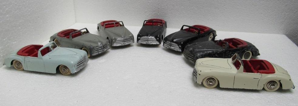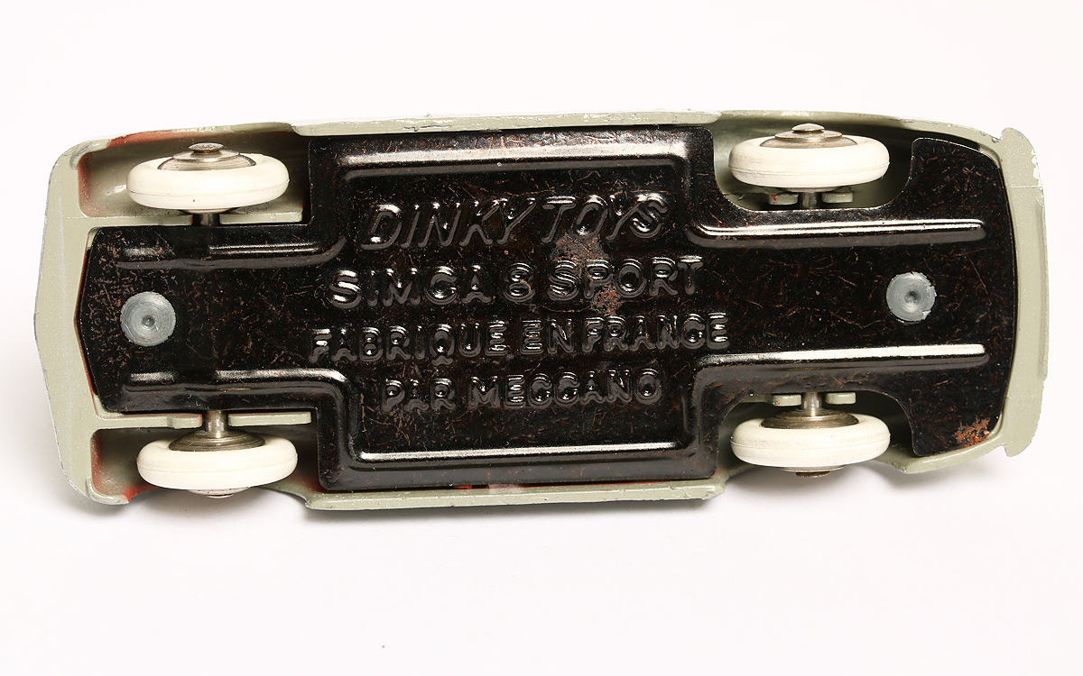 You may like me to add some photos here, recently having acquired a Simca 8 sport for the first time. Its an example of the first generation with its thin windscreen frame and very shiny spun steel hubs. In fact the no. 140a/106 British Austin Atlantic Convertible and this Simca are very similar, both in looks and technical manufacture. They are contemporaries, the latter introduced only one year later than the Austin Atlantic. The similar way the interiors were created is striking, and so is the uncommon smooth looks of both in those days. Although the French were the first to introduce recessed contour lines on their models, in the mid-1950s, this one still has the raised lines, whereas the related Austin Atlantic, as an exception, has very early British recessed lines, which generally appeared in Liverpool as late as the early 1960s. Available in France in 1952, it was also available in that year on some export markets, like the Dutch. In the USA it was available since 1954, as the single leaf little flyer demonstrates. The last appearance in the French catalogues was in 1959, showing the new number 534 only once. This is also an opportunity to show some pictures which I took back in 2006 in France, showing the mock-up for the Simca, in those days proudly owned by Jacques, and now like so many other prototypes kept in the LAuto Jaune collection in Paris. Kind regards, Jan