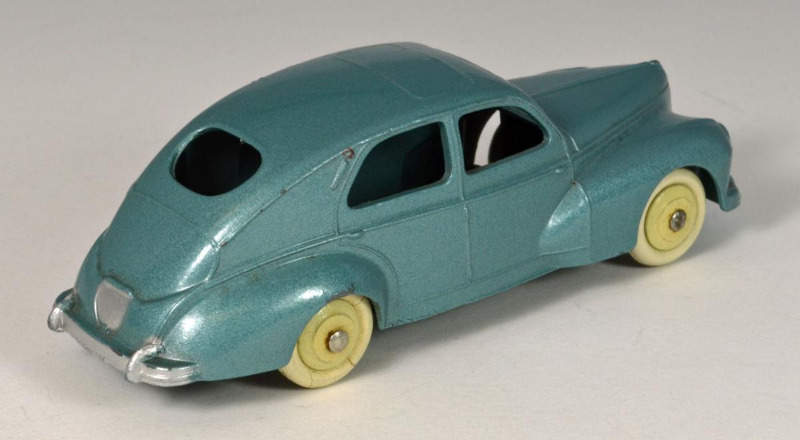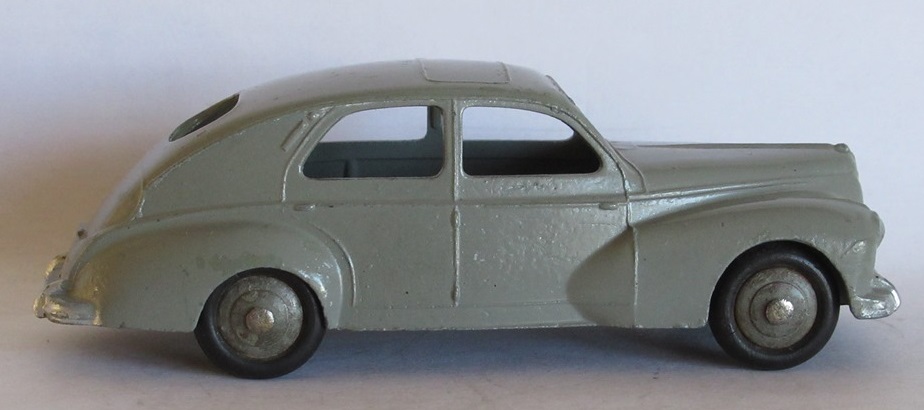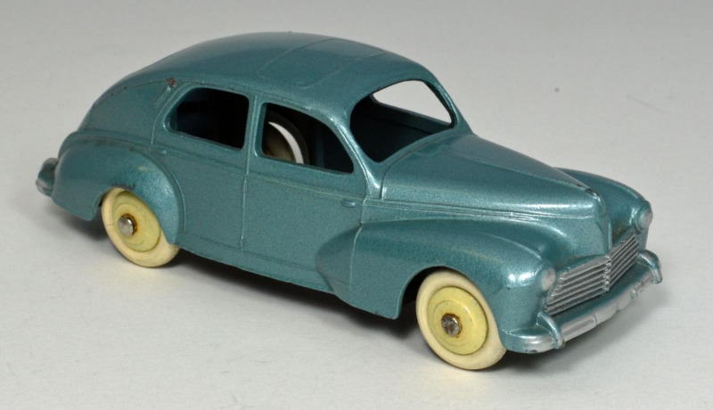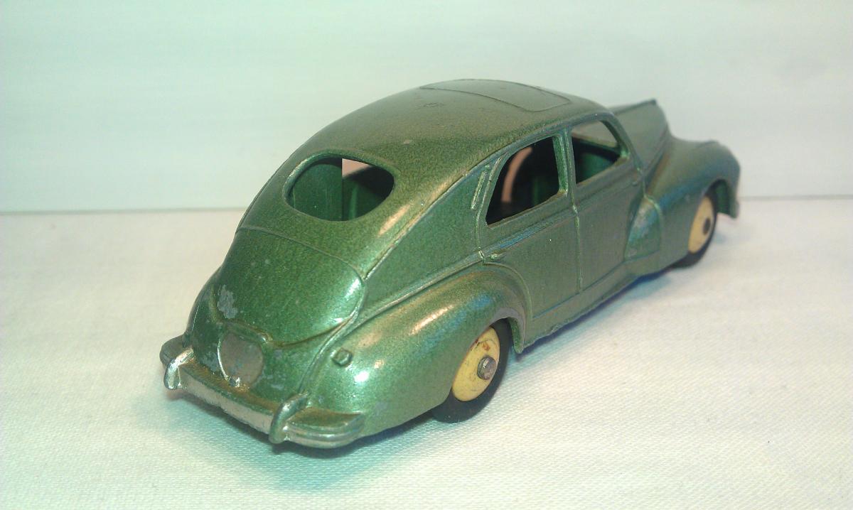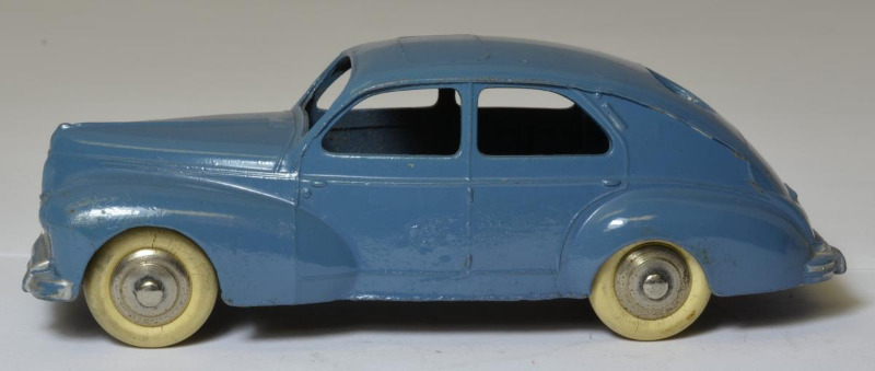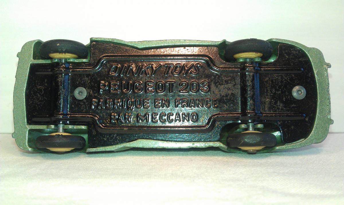 I acquired a hard to find metallic green first version of the 24r Peugeot 203 with very nice creamy - yellow ridged hubs.Because I wanted to know more about the background of this model I searchedand found interesting information about the development of de Peugeot 203.The first type of the Peugeot 203,the ' A ',is recognizable by the small rear window,the absence of the rear lights on the side flanks,the protruding fuel cap on the right rear fenderand out folding direction indicators.The very first models also had 2 handles to open the trunk.[img] images / sites / default / files / u254 / 1.% 20Peugeot % 20203 % 20Photo % 20de % 20Presse % 201947 % 20aa.jpg [/img] 1947 press photo Peugeot 203 in Paris.Note the 2 handles on the back side to open the trunk.It was removed in 1950 when the trunk could be opened frominside the car.[img] images / sites / default / files / u254 / 2.% 201949 % 20Peugeot % 20203 % 20with % 202 % 20handles % 20to % 20open % 20the % 20trunk % 20b.jpg [/img] 1949Rear side of the first issue Peugeot 203 with only 2 tail lights above Dutch provincial registration number on oval license plate - small rear window,protruding fuel capand 2 handles to open the trunk. No other taillights are visible.Note the open sunroof,visible through the window. [img] images / sites / default / files / u254 / 3.% 201950 % 20Peugeot % 20203 % 20without % 202 % 20handles % 20to % 20open % 20the % 20trunk % 20Beurs % 20Berlage % 20Amsterdam % 20b.jpg [/img] 1950Rear side of a same slightly later early Peugeot 203 with Dutch national registration number on oval license plate,protruding fuel cap,but without 2 handles to open the trunk which disappeared in 1950.It needed two extra rear lights on the rear fenders for the Dutch market. Note the beautiful Austin Atlantic convertible on the left side. [img] images / sites / default / files / u254 / 4.% 20peugeot % 201947 % 20203_salon % 20Paris % 20aa.jpg [/img] 1948 Introduction Peugeot 203 to the public on the Paris Motor Show October 1948.[img] images / sites / default / files / u254 / 5.% 20My % 2024r % 20Peugeot % 20203 % 20 % 20metallic % 20green % 20with % 20cream - yellow % 20ridged % 20hubs.jpg [/img] My 24r Peugeot 203 in metallic green with cream - yellow ridged hubs.[img] images / sites / default / files / u254 / 6.% 201949 % 20peugeot % 20203 % 20assembly % 20line % 20together % 20with % 20202.jpg [/img] 1949 assembly line of the Peugeot 203.It replaced its pre - war model Peugeot 202,here also visible on the left side of the assembly line. Highlights fromWikipediaand other sources about Peugeot 203 : The Peugeot 203 is the first post - war new model of the French car brand Peugeot.Development of the 203 started secretly as early as 1943.Between 1949,the end of production of the pre - war 202,and 1955,the launch of the 403,it was Peugeot ' s only model.The first models were presented to the press at the end of 1947and marketing began at the Paris Motor Show in October 1948, wherethe Citro n 2CVand Renault 4CV were also exhibited.Volume manufacturing was initially hampered by strikesand shortages of materials,but production got under way late in 1948,with buyers taking delivery of 203s fromearly 1949.The 203 was a massive hit in France.In a move which under some conditions might be expected to have encouraged discounting of the predecessor model,the 203 was already depictedand advertised vigorously on the final page of the sales brochure distributed to potential purchasers of the Peugeot 202 in October 1947,nearly a year before the 203 could be offered for sale.There seems to have been a good deal of pent - up demand by the time the 203 was actually launched,and the practicality,priceand reliability of the car wooed many motorists.200 were coming off the production line each day by 1950,and that year the 203 achieved 34,012 domestic sales,commanding 19.5 % of the French auto - market, whereit was second only to the ( far smaller and cheaper) Renault 4CV in terms of unit sales.Home market success was followed by the export of 203s,notably to West Germany.The Peugeot 203 has a classic architecture,front engine,rear - wheel driveand independent front wheels.Modernism is more on the engine side,Peugeot has developed an engine with hemispherical explosion chambersand valves in the heads arranged in a V.Its robust designand its modern engine allowed many preparers to produce sports versions.The most famous is unquestionably the Darl ' mat coupe: 2 carburettors,increased compression ratio,modifiedand lowered body.All these improvements allowed it to reach 140 km / h.Some of these models also have a Constantin compressor to further increase performance.The 203 had great success in endurance rides.In 1953 Andre Mercierand Charles de Cortanze won a race fromParis to Cape Town (15, 000 km) in 17 days,which also underlined the economy of the car: with a full tank you could reach 900 km.In the same year the Redex race was held in Australia,which was also won.All eleven started cars also arrived,establishing Peugeot ' s name on this continent.When production stopped afternearly 12 years of production,685,825 vehicles had left the Peugeot factories.[img] images / sites / default / files / u254 / 7a.% 20Dinky % 20Toys % 20catalogus % 20Frankrijk % 201951 % 20p % 203 -4 % 20with % 20Peugeot % 20203.jpg [/img] 1951 Introduction 24R Peugeot 203 asNouveaut in French DT catalogue.24r was for sale in France for the first time in 1952,while it was already for sale in the Netherlands in 1951.[img] images / sites / default / files / u254 / 7b.% 20Dinky % 20Toys % 20catalogue % 20Netherland % 201951 % 20with % 2024r % 20Peugeot % 20203.jpg [/img] 1951 Dutch catalogue with 24r announced as Peugeot 203 de Luxe. Afterthe war,export was also very important for France,just as it was for the United Kingdom. Given the various sales brochures shown belowand technical model information I ' ve found,I think that de prototype of DT Model 24r is of model year 1950,when th