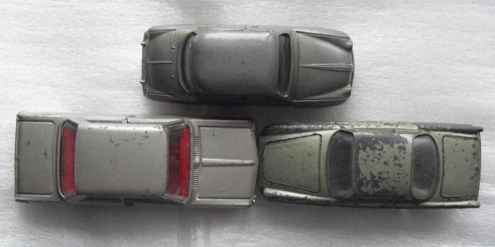 Thank you to both of you for your nice words. No Jonathan, it's not the same colour ! it's (for me) a grey/green. I add a photo comparing with the Floride which is really green and the Opel more grey ! And also an another photo of the Dauphine in a better condition. Jan O : -yes it's a green but, if you look on the photo where are my three green models, you can see that this one is more 'grey' (the model on the left) -No smooth roof in my collection and I think that the smooth roof don't exist for the Dauphine. -the 'bronze' model is a plant try. it is one and only. Cheers Richard