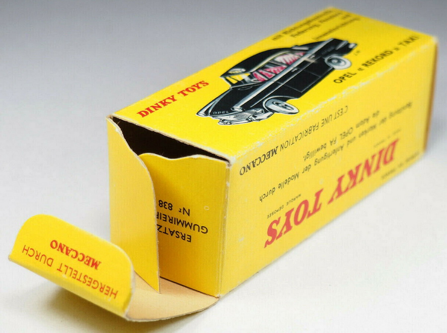 My 546 Opel Rekord Taxi on its box with German text. My model and the picture on the box are equipped with white smooth tyres.