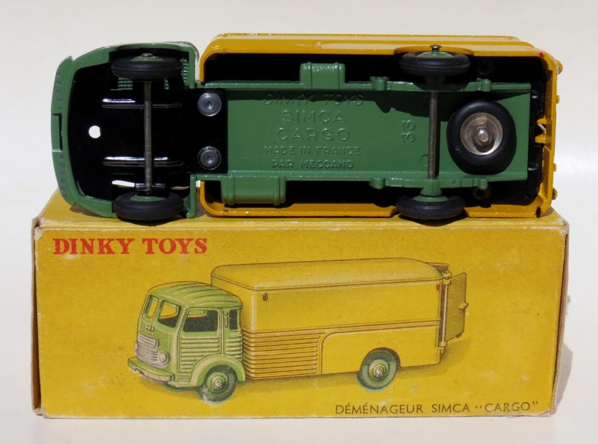 Dear Jan, 3 years later (I just read that topic !)some answers and informations : 1) Yes, it exist a box showing a Simca Cargo with a yellow back. 2) The 'Bailly' never recieved its own box. Always packed in the box numbered '33 AN' 3) The box with '577' was never produced. Here under, you will see 2 'Bailly' base plate showing the two casting differences + another one : the safety wheel fixations ! One is screwed and the other is riveted. Also, the top of the back can be very 'white' or 'cream white'