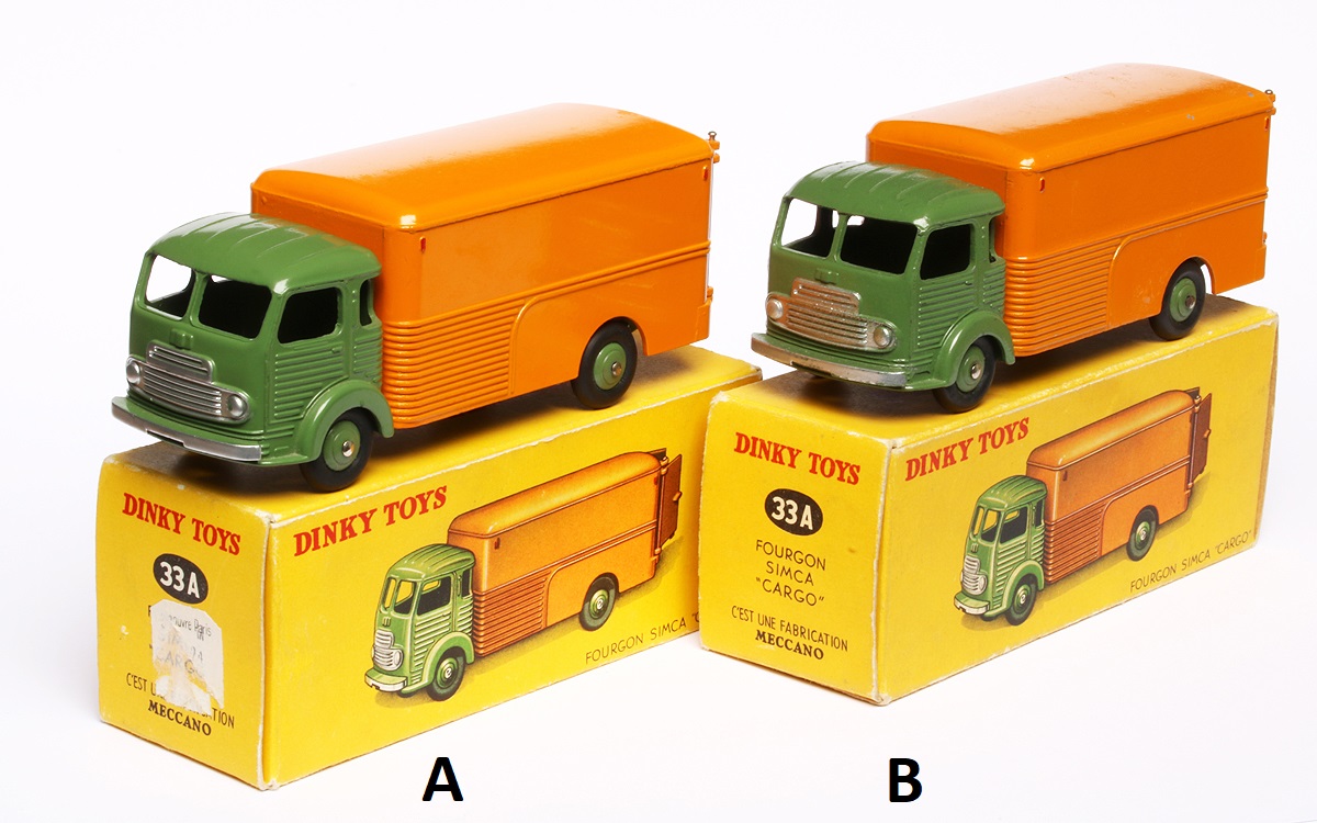 Jan I have taken a little longer to reply than originally intended, as I was interested in seeing discussions from more members instead of the single response that was provided on your comments. I also needed my response to take into consideration the English language and the need to be responsible in not offending you or anyone else. I originally had prepared a lengthy dissertation but following advice I have edited out most of that in case my message became lost in translation. To begin with, unfortunately you were unable to address my question. Nor for that matter, could anyone else. All I had asked is whether I should move a slightly chipped Bailly van into a box that clearly and unambiguously refers to the stock number for that model as evidenced by the following images from the 1958 French Meccano Catalogue, or leave its current occupant, a near mint plain 33A as the occupant of this box. At least I 'thought' it was a relatively simple question.