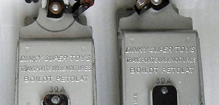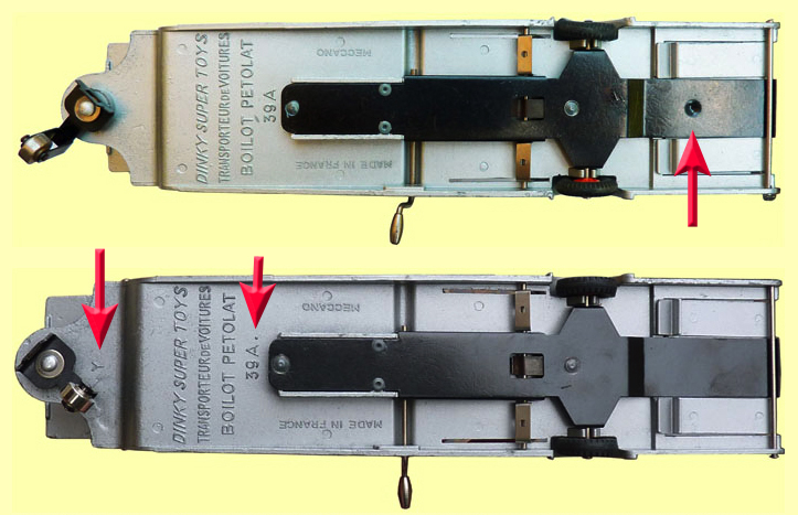 700 335 In 2014 Richard posted a picture of his three trailers and nobody spoted the variation. I blew up the picture and it is obvious that the model on the left is an early issue. This still does not explain why a letter Y and a dot have been added.