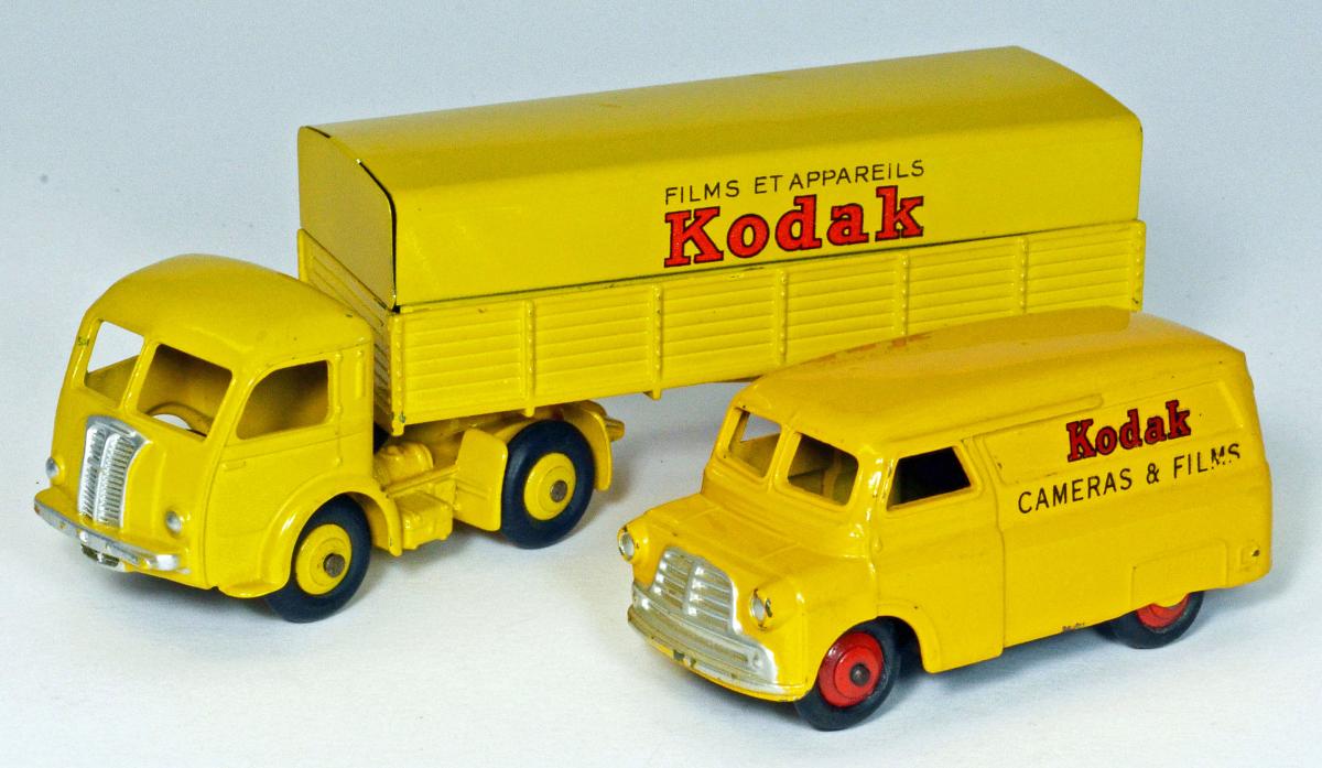 Dave-- Thanks for the compliment....like Jan, I have always liked the Panhard articulated trucks, as they are just pretty neat models. Trying to find a very nice Kodak truck will not be easy, nor inexpensive, but they are out there. Most of the ones I see are quite chipped up, and the yellow tends to show every little detail. Since you have an appreciation for Kodak, I have included the photo below of the Panhard Kodak, alongside its smaller cousin, the Bedford Kodak van. Regards, Terry