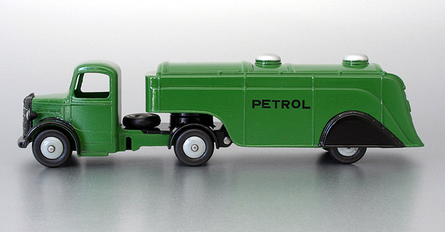 It was shown to me by another boy who had also just got the impressive British (Foden) 10-ton Army Truck, a heavy giant in small childrens hands (issued in May 1954), another highly desired Dinky Toy. I never had the tanker in my Dinky Toys play range, so, 46 years later I decided to compensate for that and buy my first non-British Dinky road vehicle model for the collection.