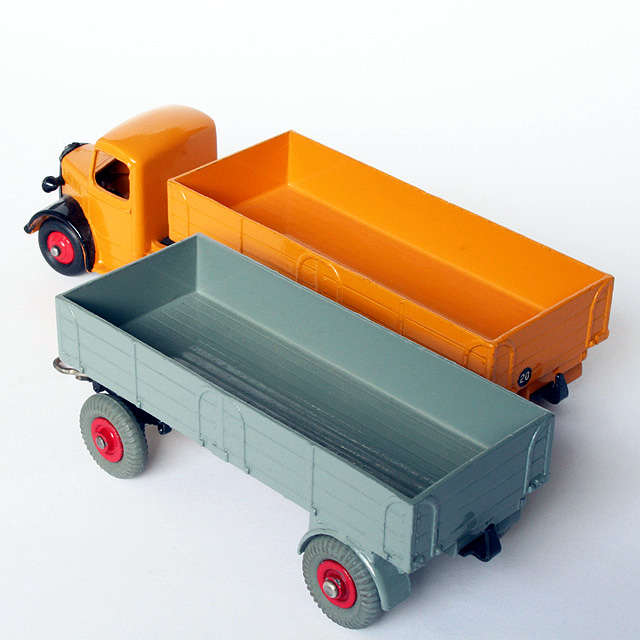 The early Panhard couple was inspired on the British Bedford Articulated Lorry of 1948, but now with a tilt. The same goes for the no. 70 Remorque bache, the French trailer, which can be seen as a covered counterpart of the British no. 551 Large Trailer of 1948.