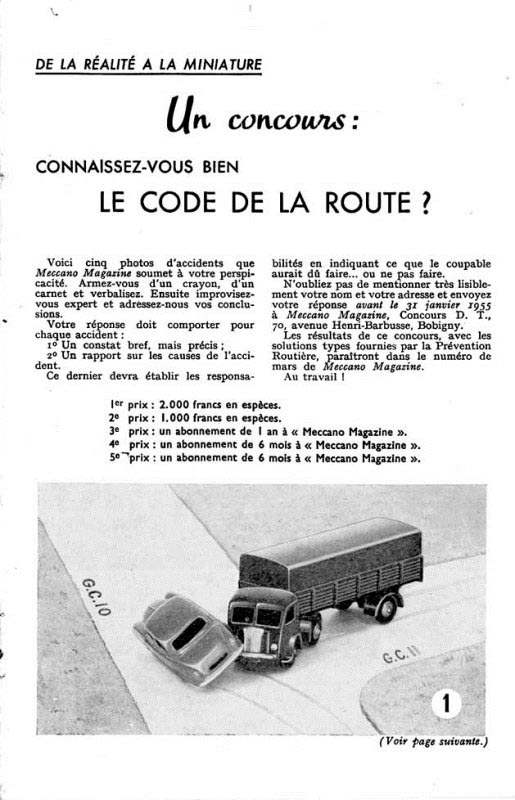 Does the 32 A exists ? According to Roulet, this advertissement less Panhard is part of a short run made after the initial run of S.N.C.F. with steam engine in the logo. As it is known that Roulet is an expert in short runs, even if he makes them himself and make beleive that they are ex factory, he can not be trusted. His only evidence is two BW photos in the January 1954 Meccano Magazine (not 1955 as stated in his 2012 book) showing in an article about the highway code one of these trucks with plain tilt. I have an other theory which is at least as good as Roulet's. For some reason, the photographer who made these pictures did not want to show the S.N.C.F. logo, he picked an unfinished tilt from the assembly line and made his pictures. After this the tilt either returned to the assembly line to be tampooed (certainly not silk screened) or was packed and shipped without the marking. A few other trucks like Richard's just skiped the marking and passed the quality control to find their way on the market. It is quite possible that one can find such models in any of the casting and assembly variations. This would prove Roulet's statement wrong.
