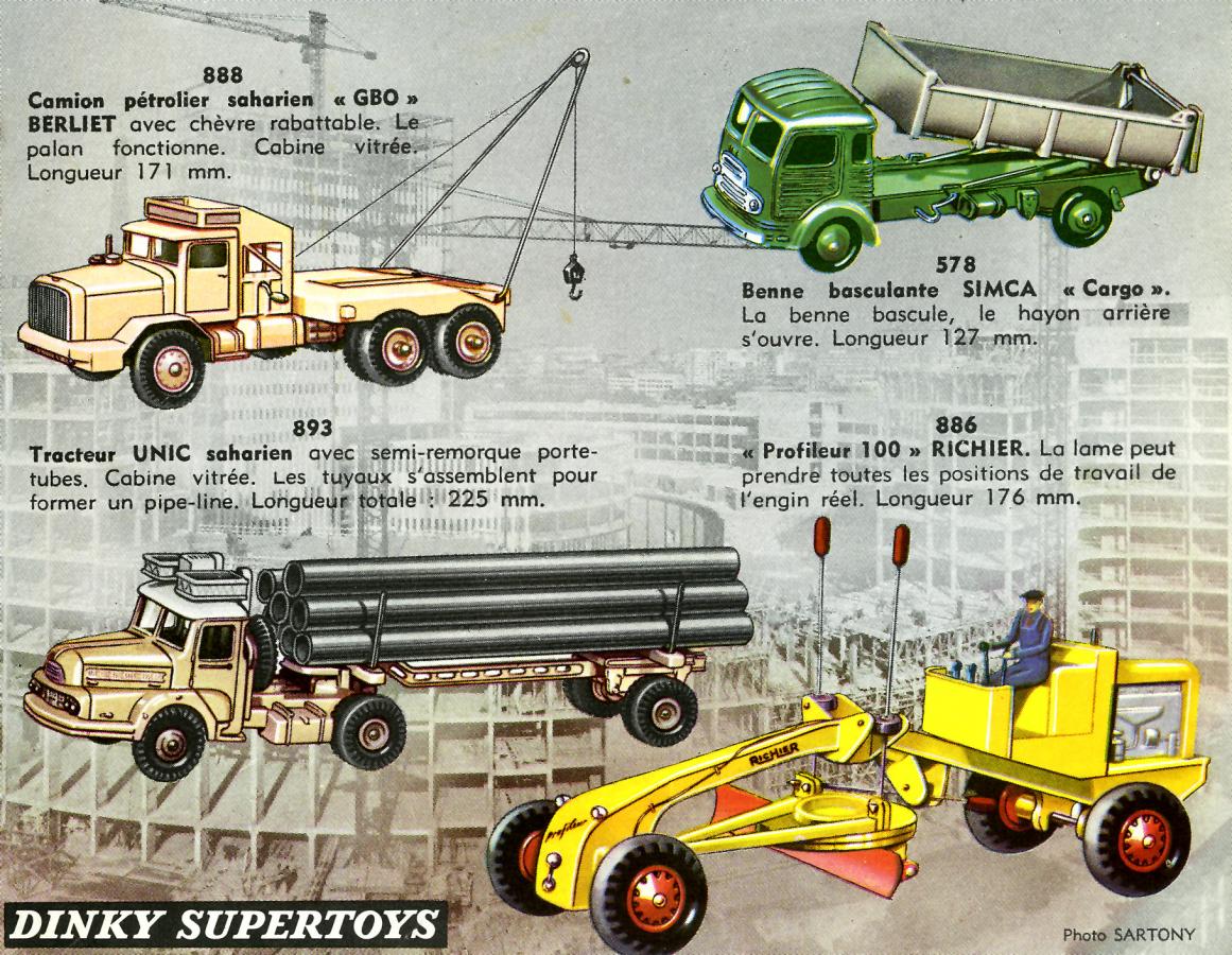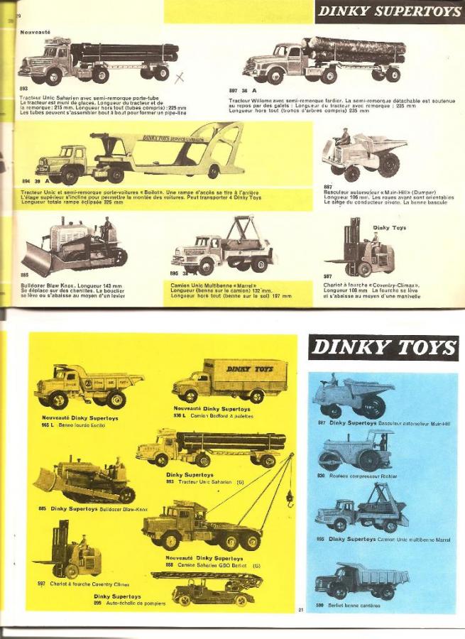 Hello Dave, Jan and Terry. Yesterday night I had a look at my catalogues and I found this : The right pipes are shown in the general french Meccano catalogues in 1959 and 1960. it's a drawing in black and white colors. In the french catalogues named 'Dinky Toys/ Dinky Supertoys' in 1964 the pipes are still incorrect but a little drawing, just over it , show how to fit the pipes together and then the pipes are correct !!! Jan, the same drawing that we can see on the pages you have posted. Same thing for 1965/1966 In the small french catalogues from 1959 to 1963 pipes are incorrect The curious thing is that, for the same period (1959 & 1960) the pipes presentations in the general catalogues and in the small ones are different ! The right pipes came back in the small catalogues 1967 to 1970. The Unic Saharien is not in the 1971 french catalogue but it is shown in the 1971 english catalogue n 7. I will try to post some photos later. Nice sunday to everybody Richard
