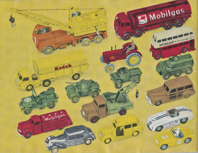 Jacques--I well clearly remember buying my US example, at a large department store in San Diego. I saw it in a glass display case, and I was told it was the only example they had left. This would have been in 1958. Since there was no box provided for it, I am assuming that it came in those trade boxes of three. And that was the only model of this I ever saw, so I was somewhat lucky to see it. Hard to say why it was not offered in Europe too, as it makes for a very striking and appealing model, in that bright yellow paint, with the contrasting Kodak livery logo. If H. Hudson Dobson did request it for the US market, maybe Meccano thought it should stay there. As you mentioned, many stories like this will remain a mystery. I am sure you are aware that Dan Toys did make a separate matching trailer. However, Atlas made the normal tractor and trailer, so the two could be bought separately and combined. What's interesting is that Atlas made their trailer like the US version, with the correct 'a', while Dan Toys modeled their separate trailer after the earlier European version, with the incorrect 'a'. If one isn't aware of the difference, it is hardly noticeable. I normally do not collect these copies, but since I absolutely love this model, I just had to buy that combination because it just looks beautiful. Oh, and that catalog I showed is the later 1955 US catalog. Best regards, Terry