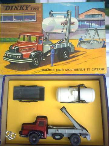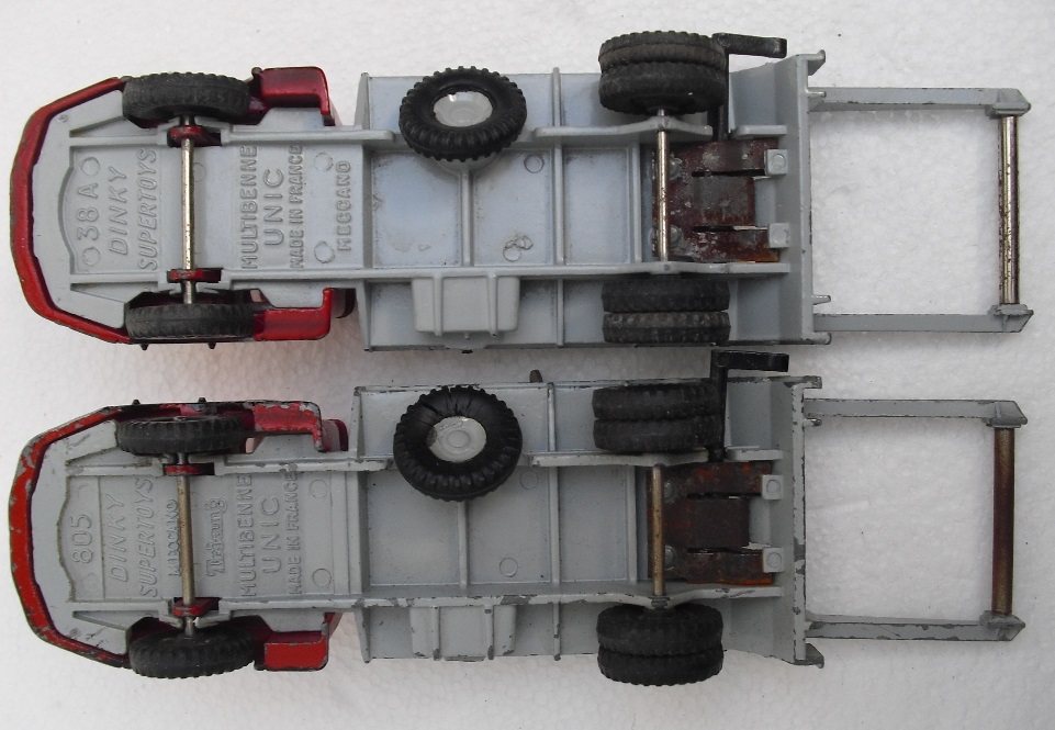 As I have all the team width=20[/img], I propose to you the following photos of both references. The first issue : 38 A. It has the same base than the UNIC multibenne Marrel; In fact, it's the same body. The second issue : 805 . The base was then modified. We can see a little shade in the red colour. For more informations, please ask our historian members. width=20[/img] Kind regards Richard PS : Unfortunately, the model with the box is not mine.wait, wait,wait .....; width=20[/img]