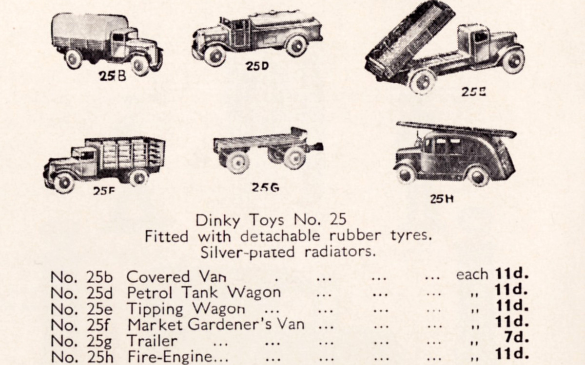 Hi Jacques, that detail is taken from the (undated) ca. 1947-48 US catalogue, four pages. I chose that one because it nicely shows the combination of both the Market Gardiner's Van and the 'real' Delivery Van. But this is no American exception, as you can see on the detail below, derived from the well-known Model Collector reproduction of the British 1939 Dinky Toys catalogue.