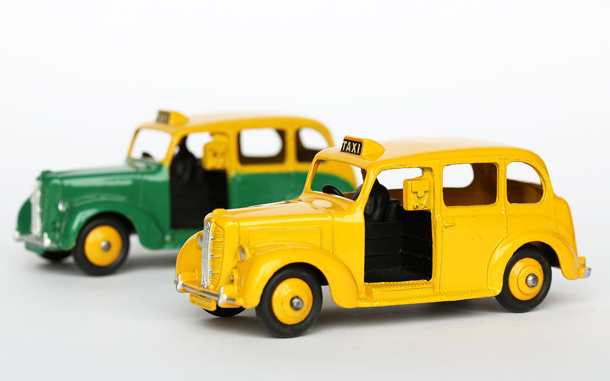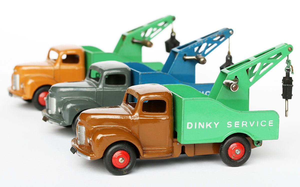 Three variant additions to models already present this week. I have been looking out for a nice no. 40h Austin Taxi in yellow for a very long time. It is pre-1954 with the cast-in number 40h below and without box. They are so hard to find without obvious chipping. The early no. 25x Breakdown Van with dark brown cab and packed in the orange lid box was another old desideratum. As a bonus this one with a H. Hubson Dobson sticker on the box lid's side with the early address: P.O. Box 254 - 906 Westfield Avenue, Elizabeth N.J. The third one is an early red companion to my much later all light blue export edition of no. 38f/105 Jaguar Sports Car. The export edition has the later flimsy pair of windscreens and this one, on the contrary, has the firmer windscreens, moreover, nicely silver framed. Happy as ever with these wonderful items! Kind regards, Jan
