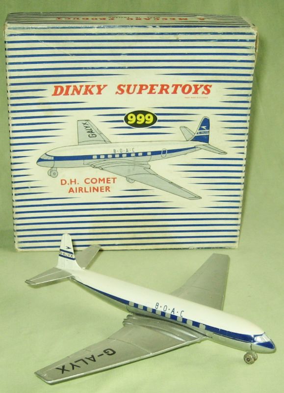 Here are 3 new arrivals, all aircraft. Firstly the Dinky 708 Vickers Viscount in BEA livery. Secondly the Dinky Supertoys 998 Bristol Britannia Airliner and thirdly the Dinky Supertoys 999 D.H.Comet. All are in excellent condition with good boxes. The Britannia has the internal packing in the box. My only criticism of the Comet is that the engine intakes are not big enough when compared with the real thing. Chris.