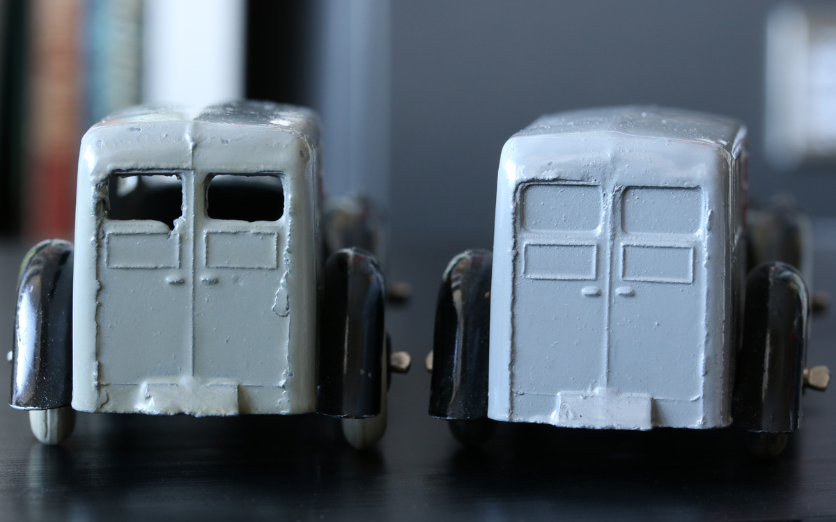 JanMore wonderful acquisitions.....and I really like those early post war versions. They are usually free of the fatigue often present in their pre-war brothers, but still retain much of the charm, such as those finely treaded white tires and smooth wheels. I also like having those open windows. Very nice Taxi too. Has anyone ever really concluded why the English Meccano factory chose to close all those small windows? Their French counterparts kept their open windows. I have heard theories about less flash issues, but that doesnt seem to likely when you look at all the other open windows still there.....just curious! Best regards, Terry