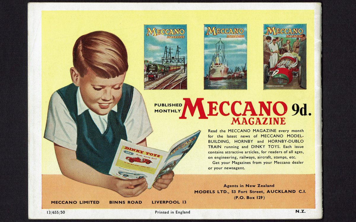 Thanks, good observations, both of you. Now you see why I found this catalogue so intriguing and attractive. I have no knowledge of other contemporary (1955/1956) Meccano catalogues for various markets, and if they show the same front cover scene. Besides, the New Zealand provenance and the as new quality were decisive for me too. Kind regards, Jan