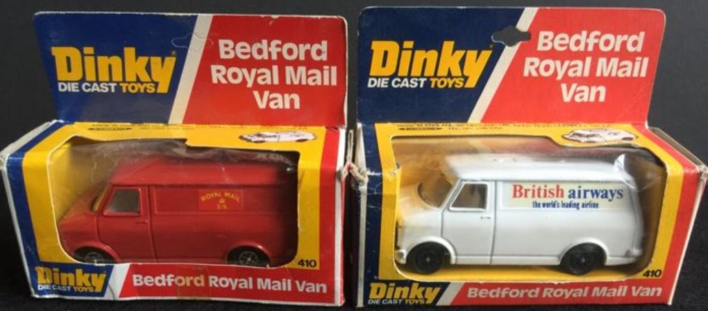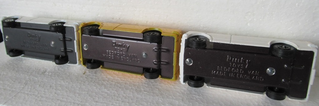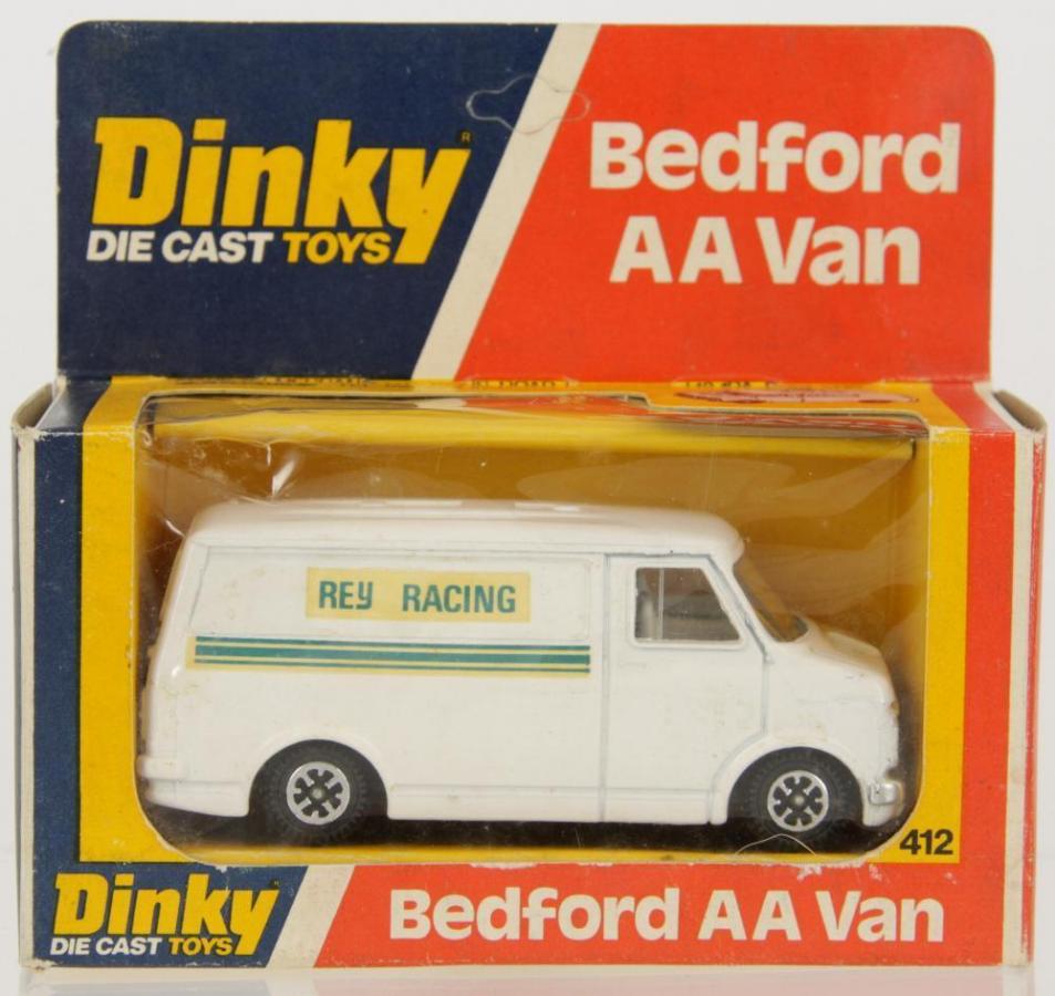 Three Bedford Van 410 John Gay arrived this morning. You will note that two of them are in a 412 box (???) and that I have never seen, in any listing, the 'Rey Racing' To note, also, that the baseplates are not metallic grey ! For the Rey racing it's black and the two others are dark brown. Kind regards. Richard