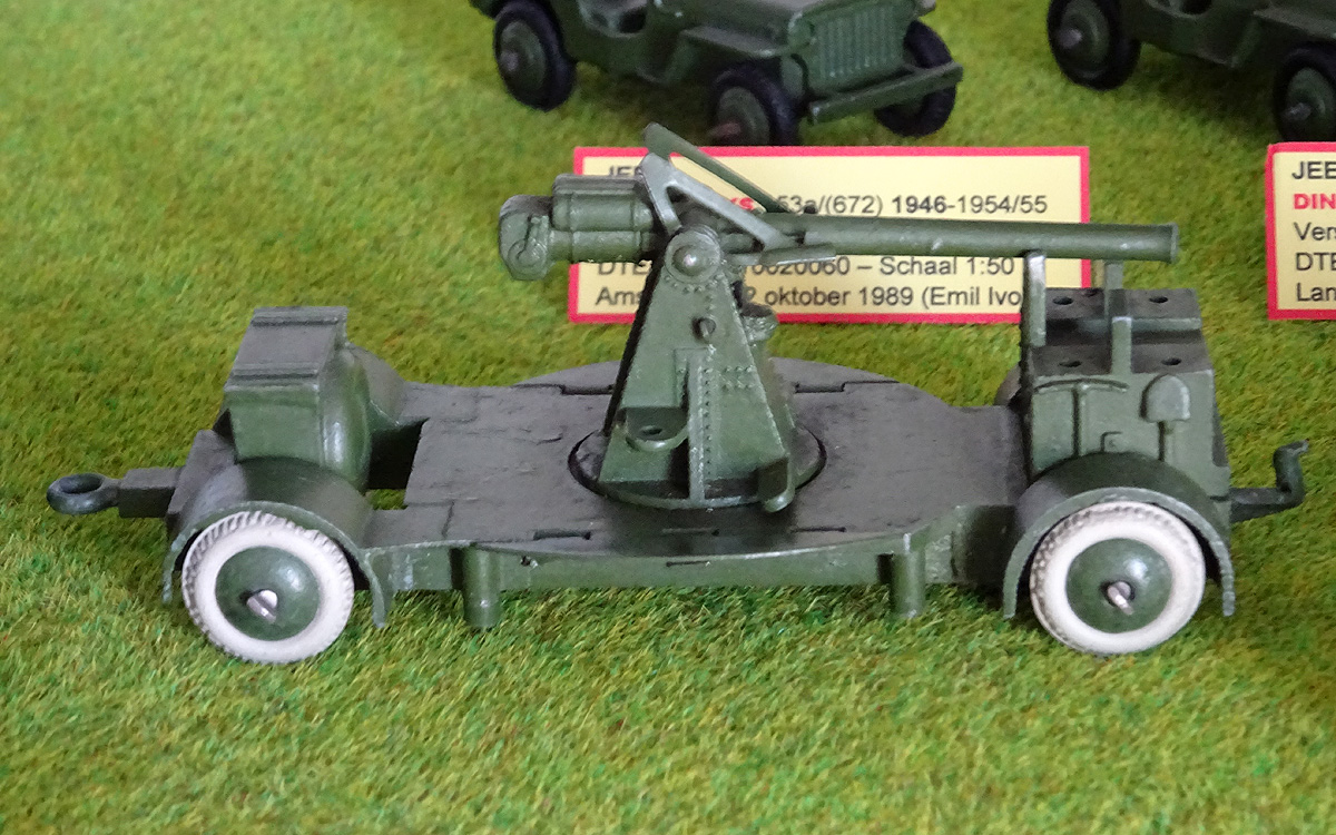 Included too was a very special no.161b AA Gun on Trailer,my fifth variation,making them complete in my opinion.It ' s the first,early post - war edition,and,with its very unusual original white treaded tyres,possibly even belonging to a first batch to be sent to the USA,like similar examples of the no.152b Reconnaisance Car.To be posted more accurately in the 161b topic thread.Kind regards,Jan