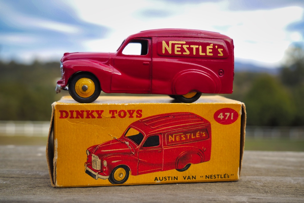 Jonathan----You are on a serious role lately...... congrats, especially on that new Simca Mirror truck. I seem to remember hearing something about that version without the decals, but had really forgotten about it. Yours is so nice and also somewhat rare, so that is pretty special, and your Austin Nestle Van is wonderful.....I always really liked the nice red color with the gold lettering. Best regards, Terry