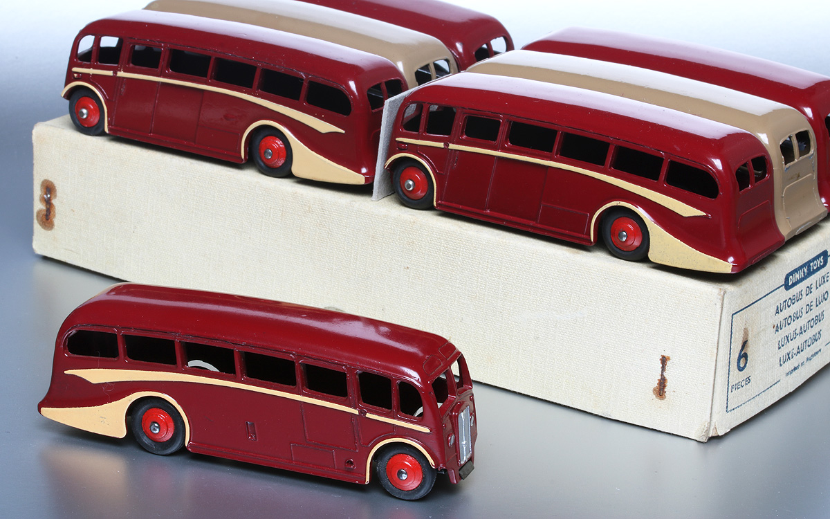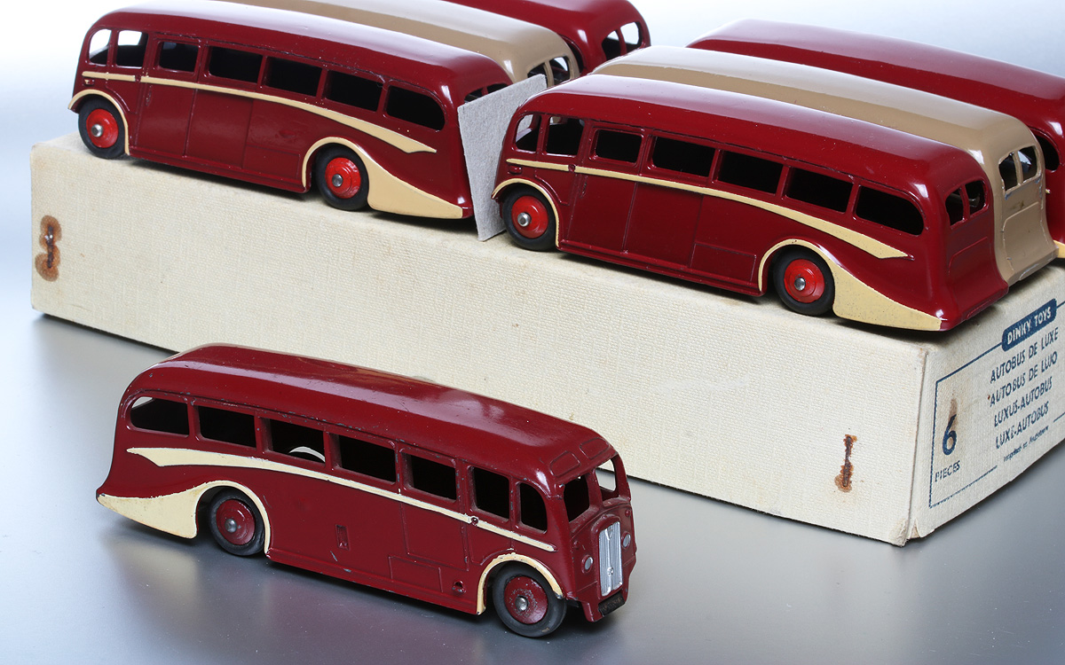 Arrived today at last, twelve weeks after dispatch (November 1 2020) by the UK seller! This may be a consolation and a source of hope for those who are still desperately awaiting a parcel from abroad for a long time. Because the model was so cheap I had it sent by regular mail, without track & trace, which may be the cause of the delay, the mail handling links probably putting parcels like these temporarily aside, giving way to track & trace and signed for. It was cheap indeed, because it is not point mint (a visible factory flaw on one wheel) and because the box is poor and with the wrong colour dot. This was no problem for me because I do not need the box, this was an excellent candidate for completing my Luxury Coach trade box with a correct example. Three maroon ones have red wheels, all but one, having the same maroon hubs. This is the one to be replaced, and the contents look great now! Kind regards, Jan