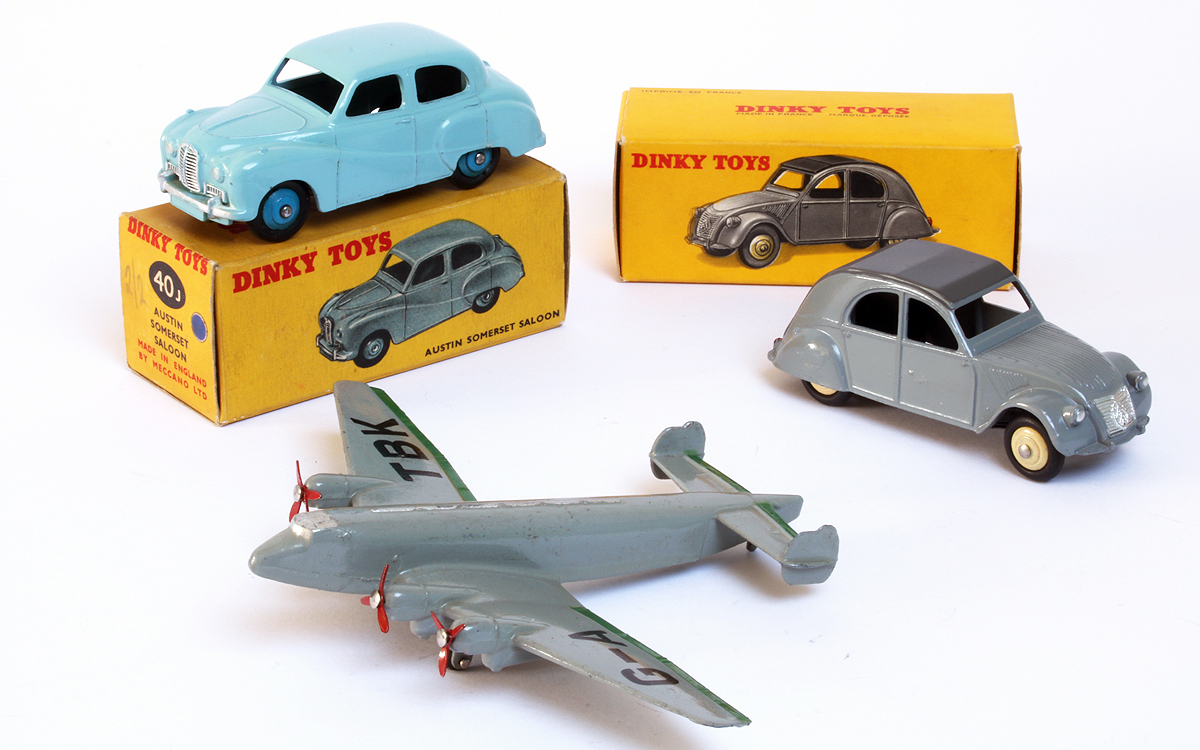 Recent additions also include this trio, consisting of a boxed 40j (replacing an unboxed 40j) Austin Somerset, the Citroen 2CV, a longtime omission in the French 24 series cars range, and a no. 62y Giant High Speed Monoplane, a companion to and fantasy post-war version of the pre-war no. 62n Junkers Ju90 Airliner. The cars very fine but rather expensive, the aeroplane a really nice bargain in very good condition. A quick photo in sunset light.