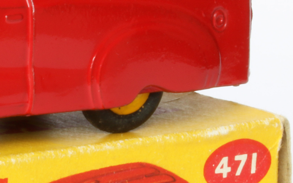 It looks well executed. As far as I can see four comments on this replica arise with me (I hope you don't mind): 1. As the design of this version dates of early September 1957, I presume this replica should have knobly tyres (see also the present advertisement under 'Club News'). 2. For the same reason (I cannot see exactly) it should have the rear axle end covers, which appeared on the later Shell-BP and on all other (Raleigh, Nestles) castings already (idem, 'Club News'). 3. The shade of blue should be exactly the same as for the no. 104 Aston Martin (G38 blue). 4. If it should be given a fake reference number I would opt for the unused 473, subsequent to the last issued 472 Raleigh. Kind regards, Jan