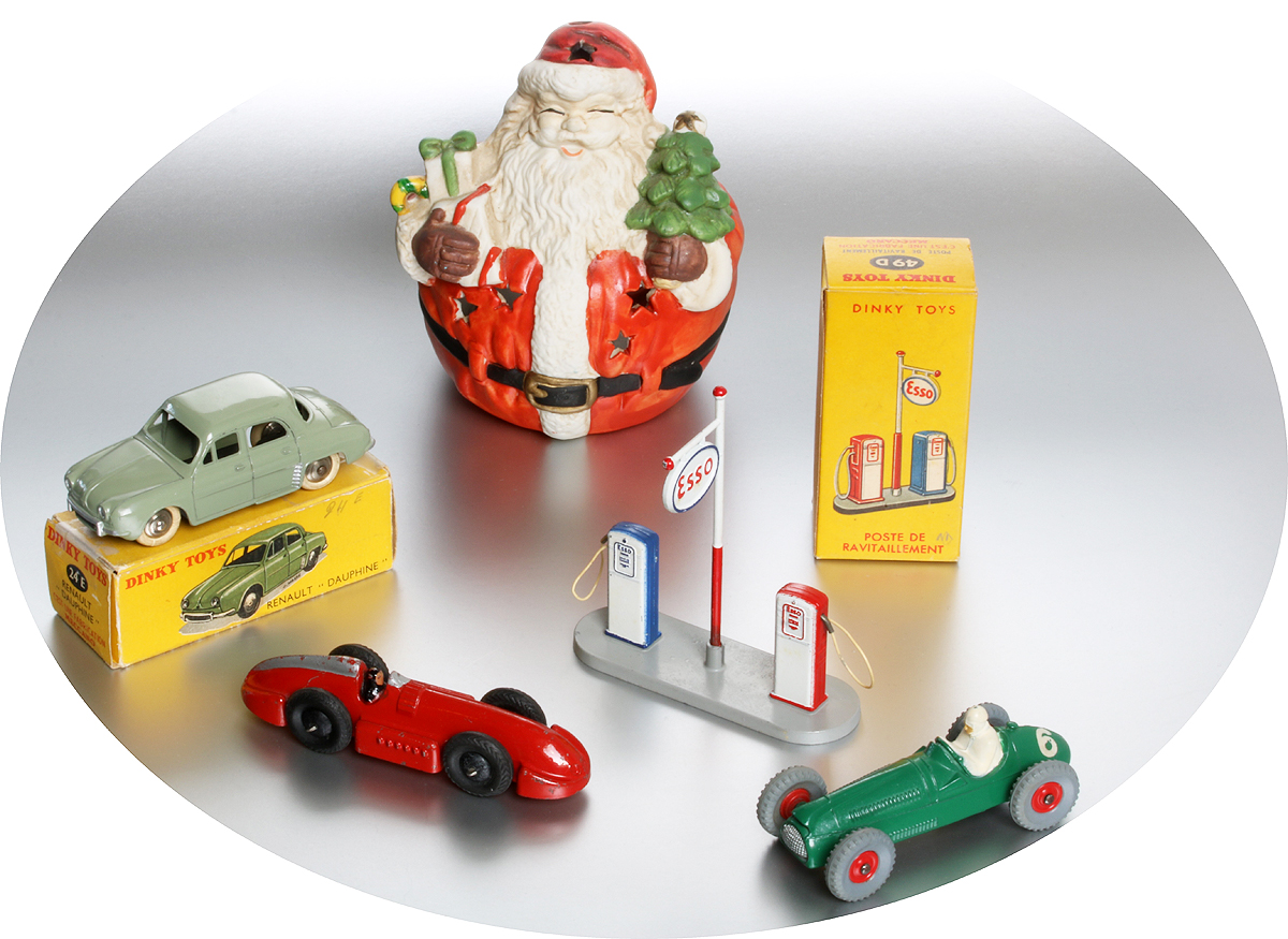 Hi all, herewith my season's greetings. Let's hope we can meet again in person, individually or at the AGM in 2022, after the last one, back in 2019! And some nice Christmas gifts: The very early post-war red Speed of the Wind with black driver is a special one, the same as Terry's, but this one with black tyres. The original French Esso Station is far more difficult to find than the abundantly available Atlas replicas. The Renault Dauphine is very nice, with a poor/fair box, but very affordable compared with many seen around. The almost perfect unboxed plastic wheeled Cooper Bristol was a real bargain, a replacement for one I sold not long ago. Kind regards, Jan