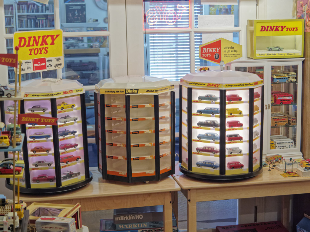 Thank you, Jan! I do have one model on my want list (the 288 Superior Cadillac 'Falck' ambulance, preferably the black-and-white version) but failing that, I may really be done. My Dinky Toys and displays all live in one small room, and I see no point in adding models I cannot display. I did obtain the rotating display seen in the middle of this picture this week. Even though it is faded and battered, it will help expose some models that are currently hidden ...