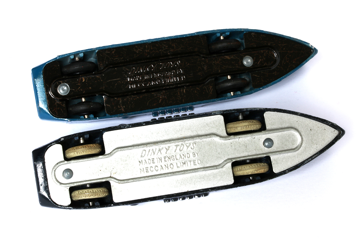 The darker blue no. 23s Streamlined Racing Car arrived from Italy this morning. It is an early postwar example (1945-1946) with smooth black hubs, silver base plate and fine treaded white tyres. Not perfect but quite nice, a companion to my slightly later (1946-1948) medium blue one. Price: 14,90! Admittedly, the travel of the parcel cost the same amount, but even so, a quite fair bargain. And the journey from Torino took ... 4 days! Kind regards, Jan